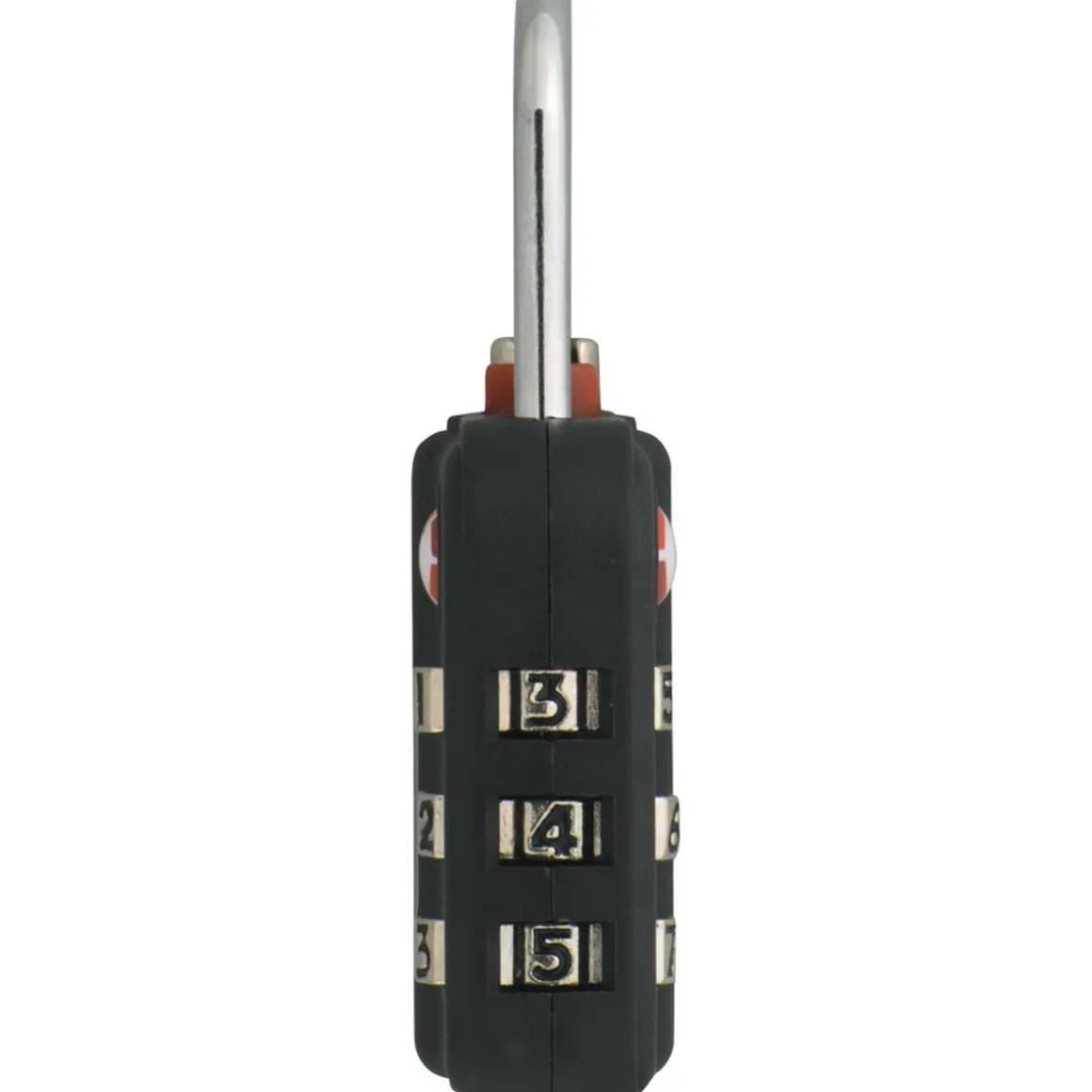 - Das Vorhangschloss verfügt über drei Zahlenrollen und einen normalen Bügel.