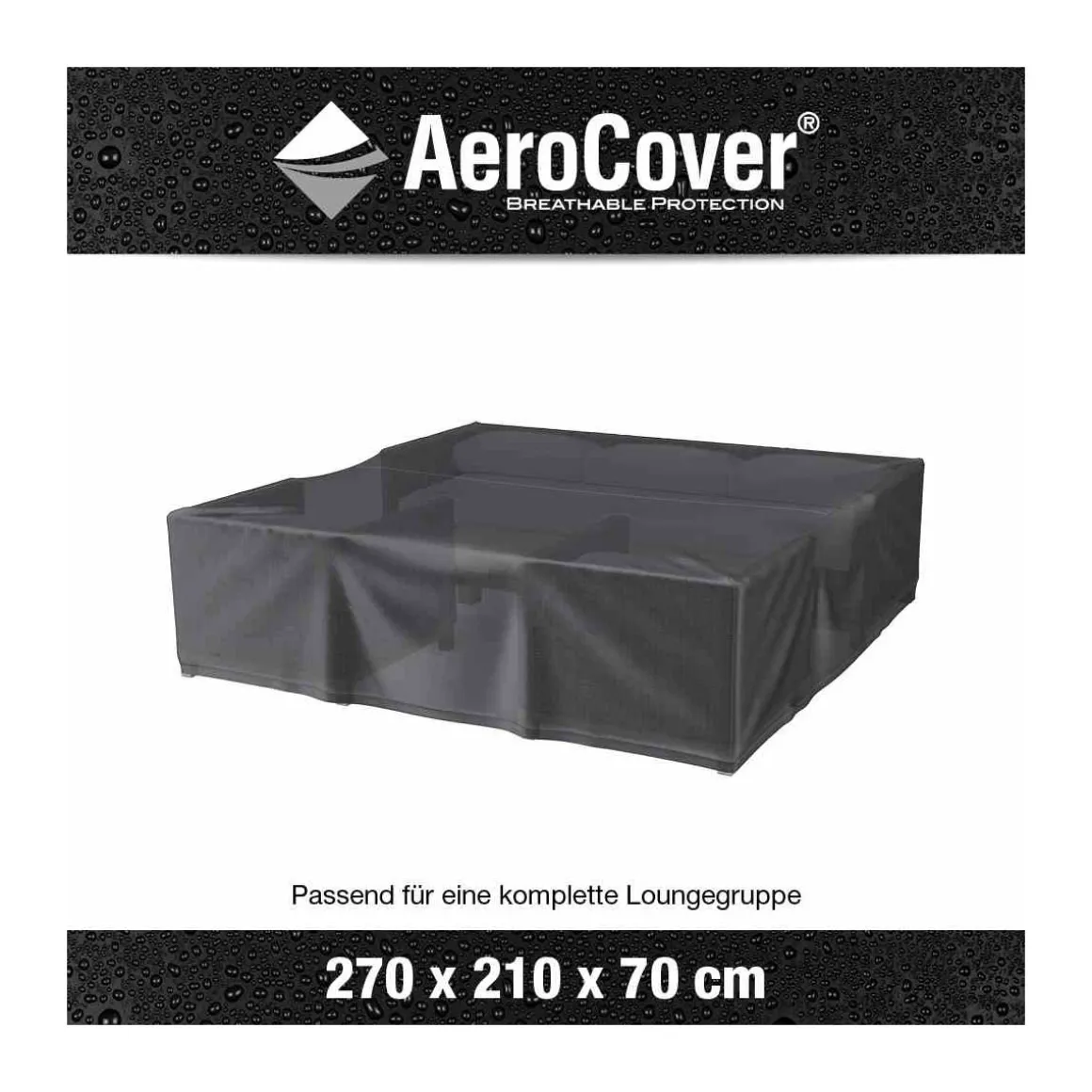 Atmungsaktive Lounge-Hülle für quadratische Lounge-Sets 235x235x70 cm Das leichte Ripstop Polyester-Gewebe ist wasserabweisend und reduziert die Kondensbildung Die integrierte, atmungsaktive Membran sorgt dafür, dass der Bildung von Mehltau und Schimmel vorgebeugt wird verlängert die Lebensdauer Ihrer Gartenmöbel besonders handlich in der Anwendung platzsparend aufzubewahren integrierte Aufbewahrungstasche Zugband mit zwei Stoppern AeroCover-Gewebe ist 100% wasserdicht Nähte spritzwasserfest