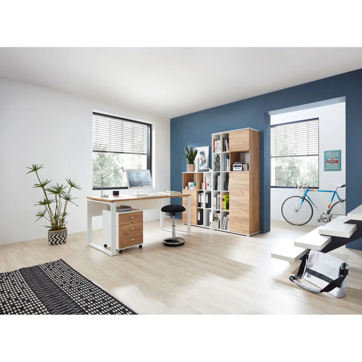 ‚Der Aktenschrank Lionel‘ vereint alles, was man sich von einem modernen Möbelstück wünscht: Funktionalität, Stil und Qualität! Er ist nicht nur praktisch durch seine offenen Fächer und innovative Technik; er setzt auch optische Akzente mit seiner eleganten Farbgebung in Weiß/Navarra-Eiche-Nachbildung. Warten Sie nicht länger! Holen Sie sich dieses Schmuckstück noch heute bei – Ihr Zuhause verdient es!
