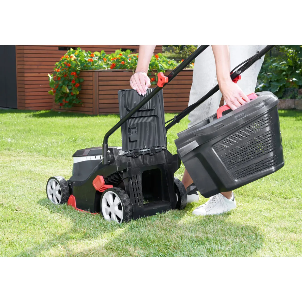 - Fangkorbvolumen von 35 Litern für eine saubere Aufnahme des Schnittguts
