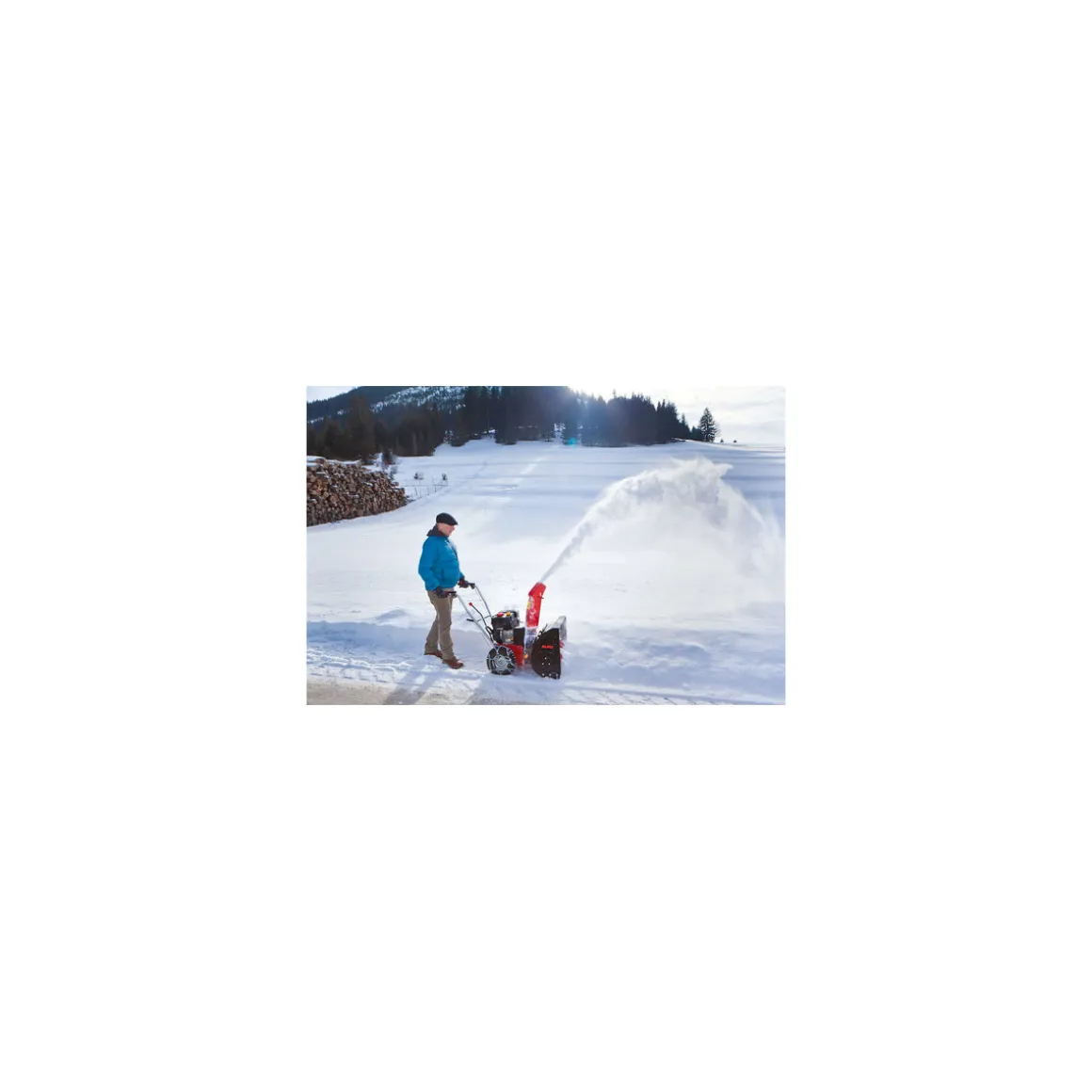 Die Schneefräse mit Stollenbereifung ist ideal für das komfortable Schneeräumen rund um Haus und Hof sowie kleineren Parkplätzen und Stellflächen.Mühelose Winterarbeit mit Benzin-Schneefräse 560 IIMit der Benzin-Schneefräse 560 II SnowLine wird aus dem anstrengenden Winterdienst eine fast mühelose Betätigung an der frischen Luft. Fräsen Sie den Schnee lieber weg, als ihn mit der Schneeschaufel zu schippen. Selbst große Räummengen und verharschter Schnee sind für dieses Modell leicht zu bewältigen. Kommen Sie darüber hinaus in den Genuss von Komfortfunktionen, wie den ergonomischen Führungsholm oder den zuschaltbaren Antrieb. Dank ausgereifter Motoren- und Fräsen-Technologie erhalten Sie mit unserer Schneefräse einen zuverlässigen, bärenstarken Partner für die kalten Schneetage.Technische Details der Benzin-Schneefräse 560 IIDie kraftvollen Motoren der Schneefräse mit 4,0 kW und 182 ccm Hubraum bieten durch die OHV-Technologie mit oben liegenden Ventilen einen hervorragenden Wirkungsgrad, was sich durch sparsamen Verbrauch bemerkbar macht. Die Räumbreite beträgt 56 cm, die Schnee-Einzugshöhe beträgt 51 cm, und je nach Beschaffenheit wird der Schnee bis zu 15 m weit durch den drehbaren Auswurfschacht befördert. Der Radantrieb erfolgt davon unabhängig, sodass sich die Schneefräse immer weiterbewegt und konstant Schnee räumt. Mit der Stollenbereifung ist dabei auch bei widrigen Bedingungen für gute Traktion und leichte Manövrierfähigkeit gesorgt. Durch den wintertauglichen, starken OHV-Motor und den zuschaltbaren Radantrieb mit 5 Vorwärts- und 2 Rückwärtsgängen ist die 2-stufigen (Schnecke und Wurfrad) Schneefräse SnowLine 560 II besonders einfach zu handhaben. Durch den Seilzugstarter kann auch in besonders kalten Wintertagen die Schneefräse problemlos gestartet werden.