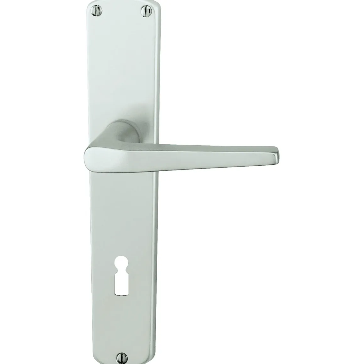 Die Alpertec Langschildgarnitur Phil-LS PZ F1 72 mm ist die perfekte Wahl für alle, die eine stilvolle und robuste Türklinke suchen. Mit ihrem silbernen Aluminium-Material und der eloxierten Oberfläche ist sie nicht nur optisch ansprechend, sondern auch langlebig und widerstandsfähig.