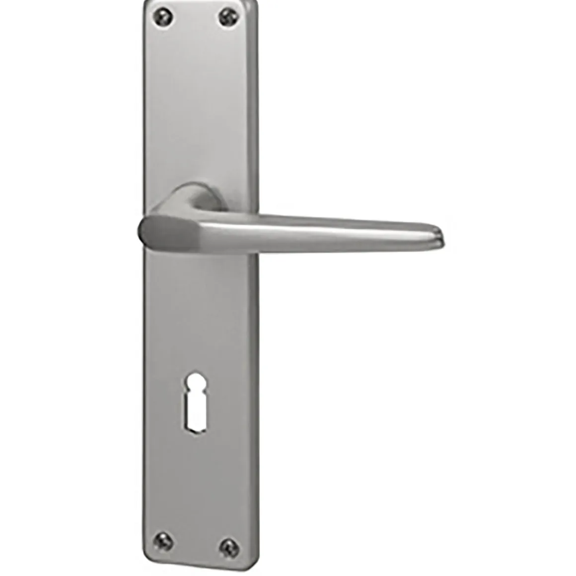 Die Alpertec Langschildgarnitur Tanja ist die perfekte Wahl für alle, die auf der Suche nach einer stilvollen und funktionalen Türbeschlag-Lösung sind. Mit ihrer silbernen Grundfarbe und dem hochwertigen Aluminium-Material bietet sie nicht nur eine ansprechende Optik, sondern auch eine hohe Langlebigkeit.