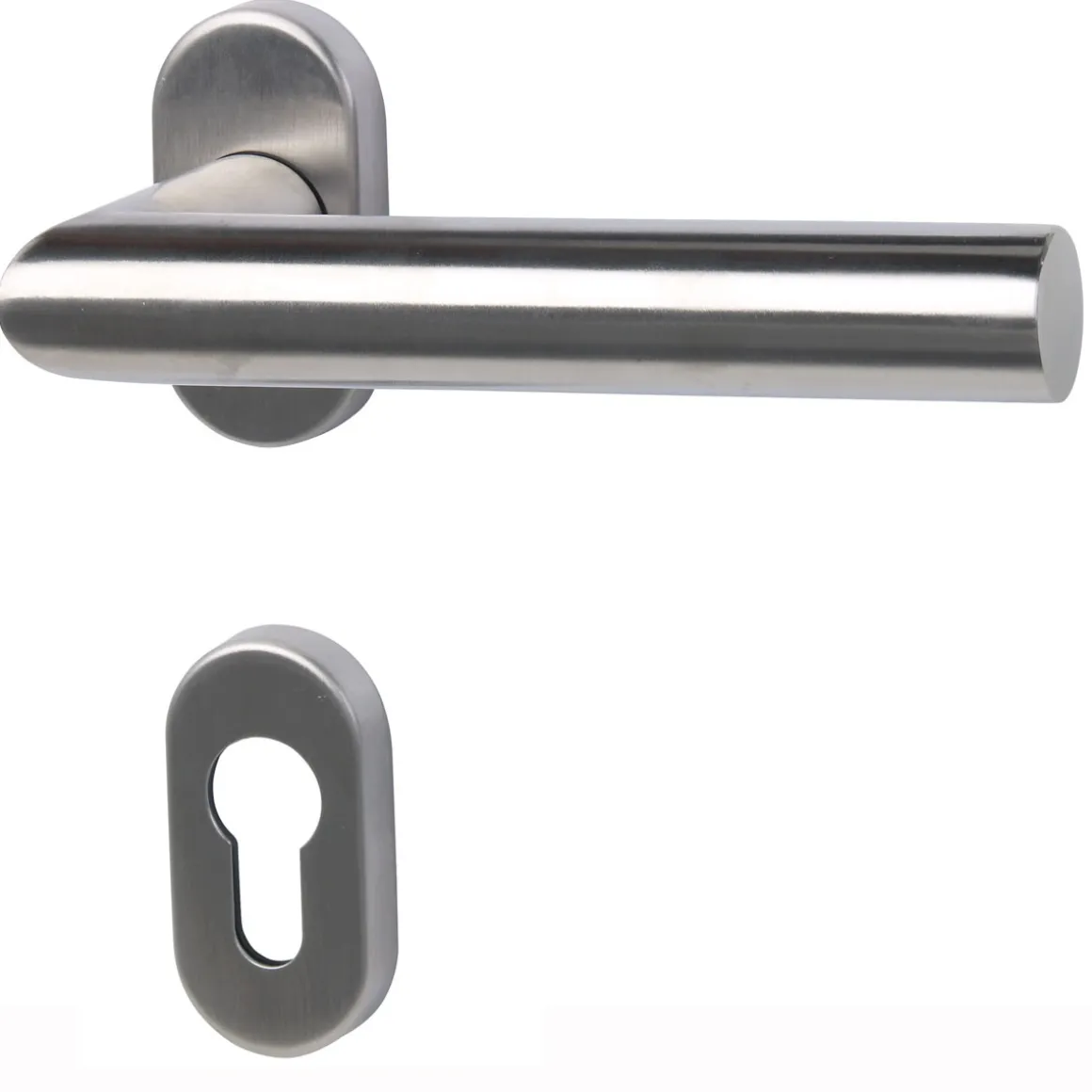 Die Alpertec Schmalrahmengarnitur Metz-R ES satiniert PZ rechts ist die perfekte Wahl für Ihre Haustür. Mit ihrem edlen Design und ihrer hochwertigen Verarbeitung wird sie zum Blickfang an Ihrer Tür.