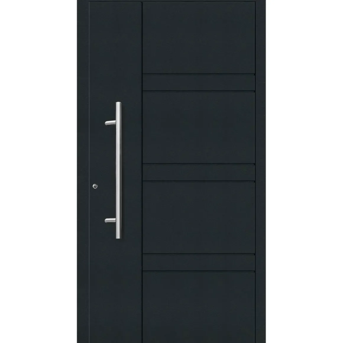 Sicherheitshaustür „Exklusiv“ inkl. Griffset!100% Aluminium mit hochwertiger Pulverbeschichtung – ohne Stahl, ohne Verwendung von Kunststoff oder Holz, ohne Dekorfolie auf der OberflächeTechnische Spezifikationen:- Ud-Wärmedämmwert 0,95 W/m²K- 75 mm beidseitig flügelüberdeckende wärmegedämmte Füllung ohne sichtbares Flügelprofil- Aluminium Profil Bautiefe 77 mm- Thermisch getrennte Bodenschwelle aus Aluminium mit verbesserter Wasserdichtigkeit- 3-fach Schwenkhaken-Sicherheitsverriegelung- 2 Stück dreidimensional verstellbare Rollenbänder- 2 Stück Aufhebelsicherungen (Bandseitensicherung)- 4-fach Isolierverglasung VSG 33,4 (P4A), innen und außen satiniert- inklusive Griffset mit 80 cm Stoßgriff, Innendrücker, Sicherheits-Schließzylinder sowie 3 Schlüsseln, Sicherheits-Kernziehschutzrosette Weitere Wünsche wie Sonderfarben, Sondermaße und Zubehör (Spione, Smart-Home, Griffe) erhalten Sie auf Wunsch mit ausführlicher Beratung nur in unseren Märkten! Wichtiger Hinweis: Diese Haustür ist eine Sonderanfertigung, das Widerrufsrecht ist ausgeschlossen (ausgenommen Mängel).