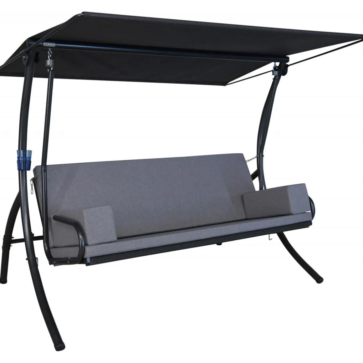 Die 3-Sitzer Angerer Hollywoodschaukel Elegance Tolar in der Farbe grau lässt sich mit wenigen Handgriffen zur bequemen Liegefläche verwandeln. Das wetterfeste Sonnendach ist verstellbar. Die Kissen sind aus einem besonders hochwertigen und angenehmen Stoff gefertigt und lassen sich dank der praktischen Reißverschlüsse einfach abziehen und bei 30° C in der Maschine waschen. Das robuste Gestell der Hollywoodschaukel besteht aus verzinktem und pulverbeschichtetem Stahl.