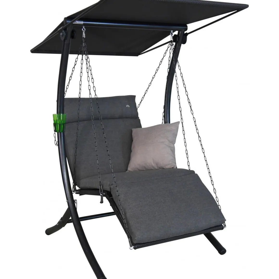 Die 1-Sitzer Angerer Hollywoodschaukel Swing Smart in der Farbe stone lässt jeden noch so bequemen Schaukelstuhl alt aussehen. Die ergonomisch geformte Sitzfläche und das komfortable Fußteil versprechen unübertroffenen Komfort. Mit wenigen Handgriffen lässt sich die Lehne individuell verstellen und sogar zur bequemen Liegefläche verwandeln. Die freischwingende Kettenaufhängung ermöglicht es, auch im abgeklappten Zustand noch zu schaukeln. Das wetterfeste Sonnendach ist verstellbar. Das Kissen ist aus einem besonders weichen und angenehmen Stoff gefertigt und lässt sich dank der praktischen Reißverschlüsse einfach abziehen und bei 30° C in der Maschine waschen. Das robuste Gestell der Hollywoodschaukel besteht aus verzinktem und pulverbeschichtetem Stahl.