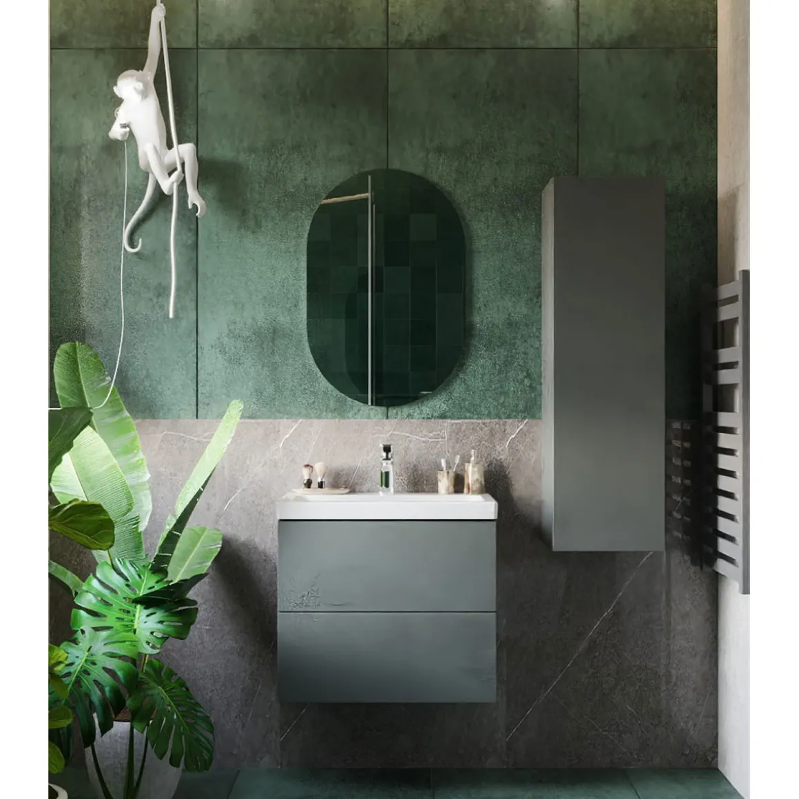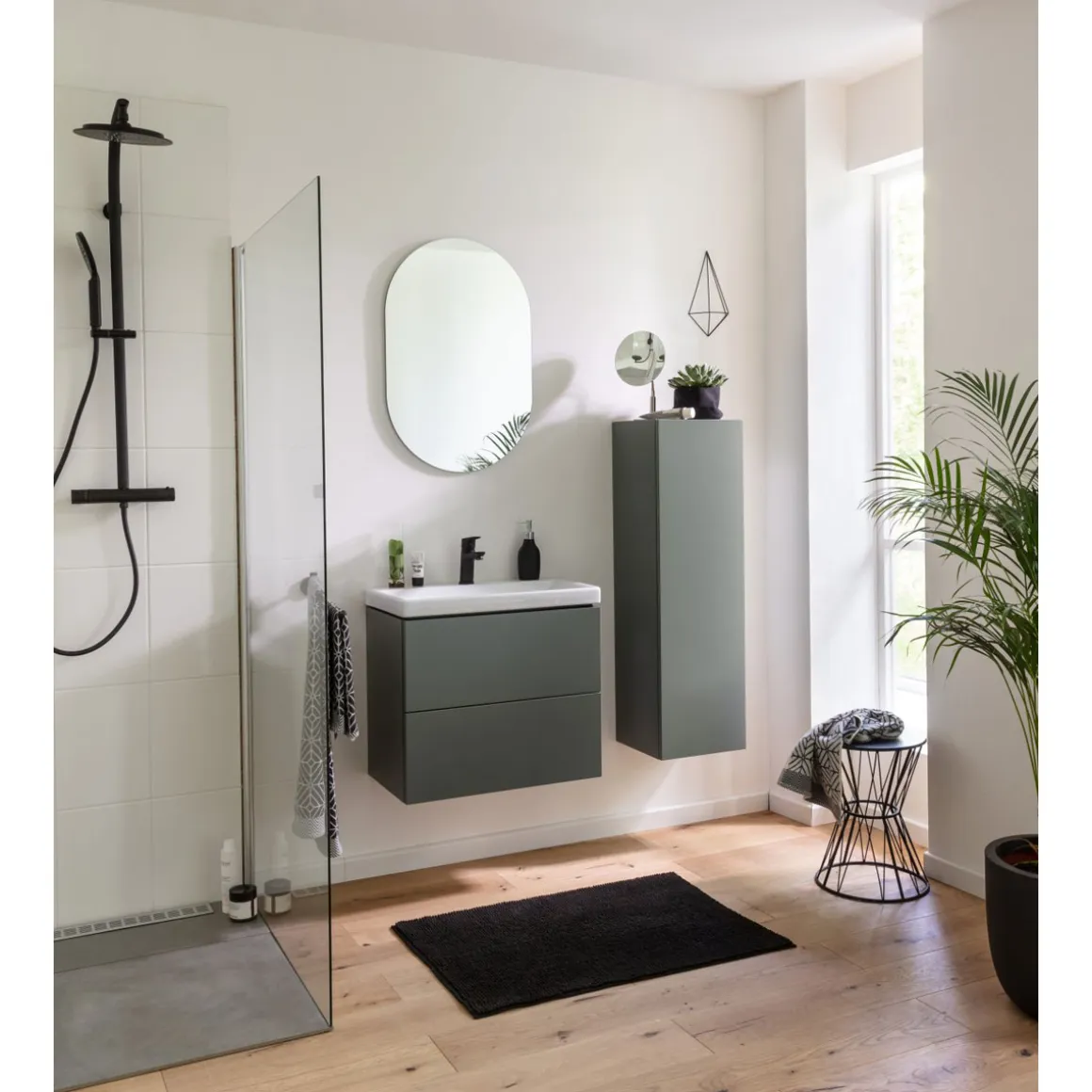 BADMOBIL Waschtischunterschrank CRAFT 63 x 54 x 36 cm 2 Schubladen mit Push-To-Open grün-matt