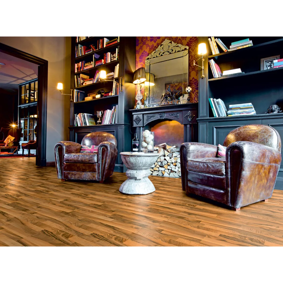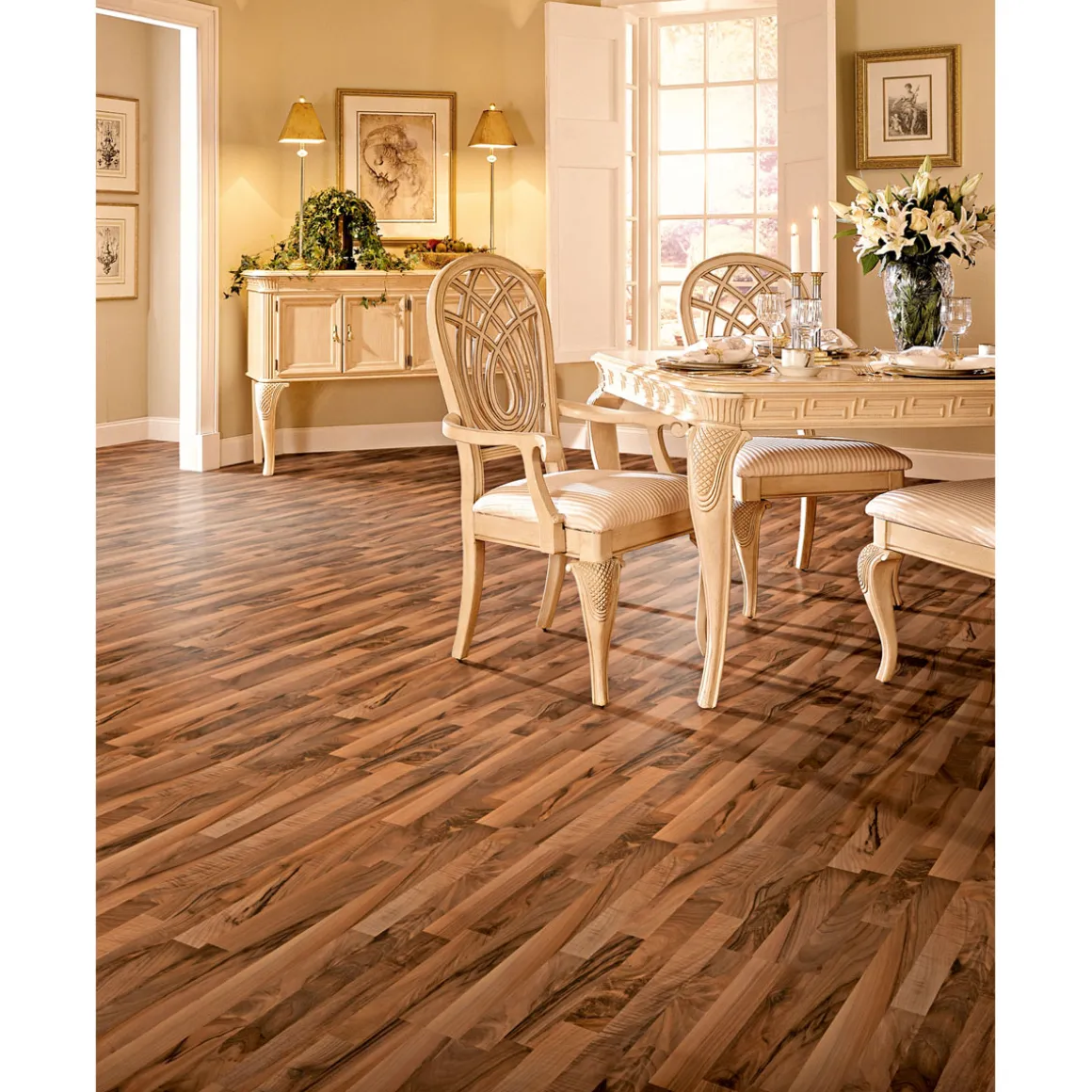 Erleben Sie mit dem Basic Laminatboden Nussbaum ein warmes und gemütliches Ambiente in Ihren Räumlichkeiten. Die Holznachbildung verleiht Ihrem Boden eine natürliche Optik, die jeden Raum aufwertet.