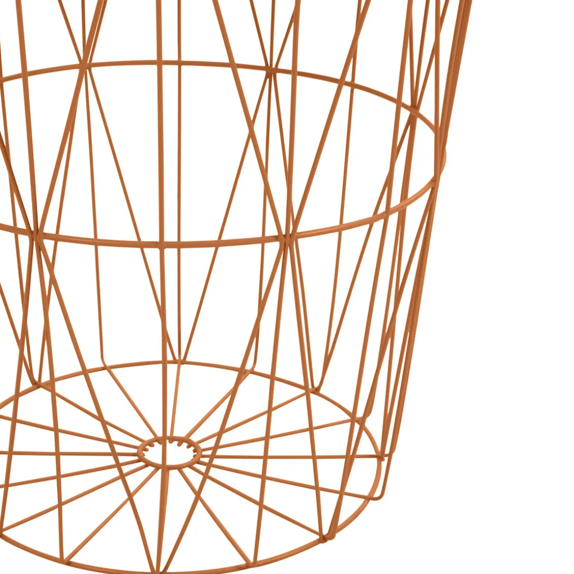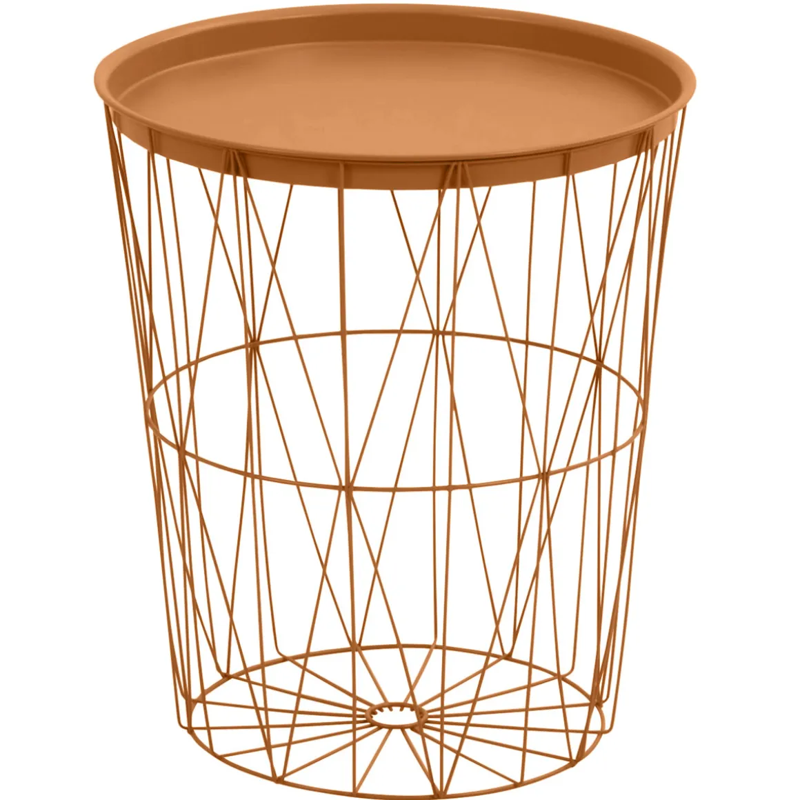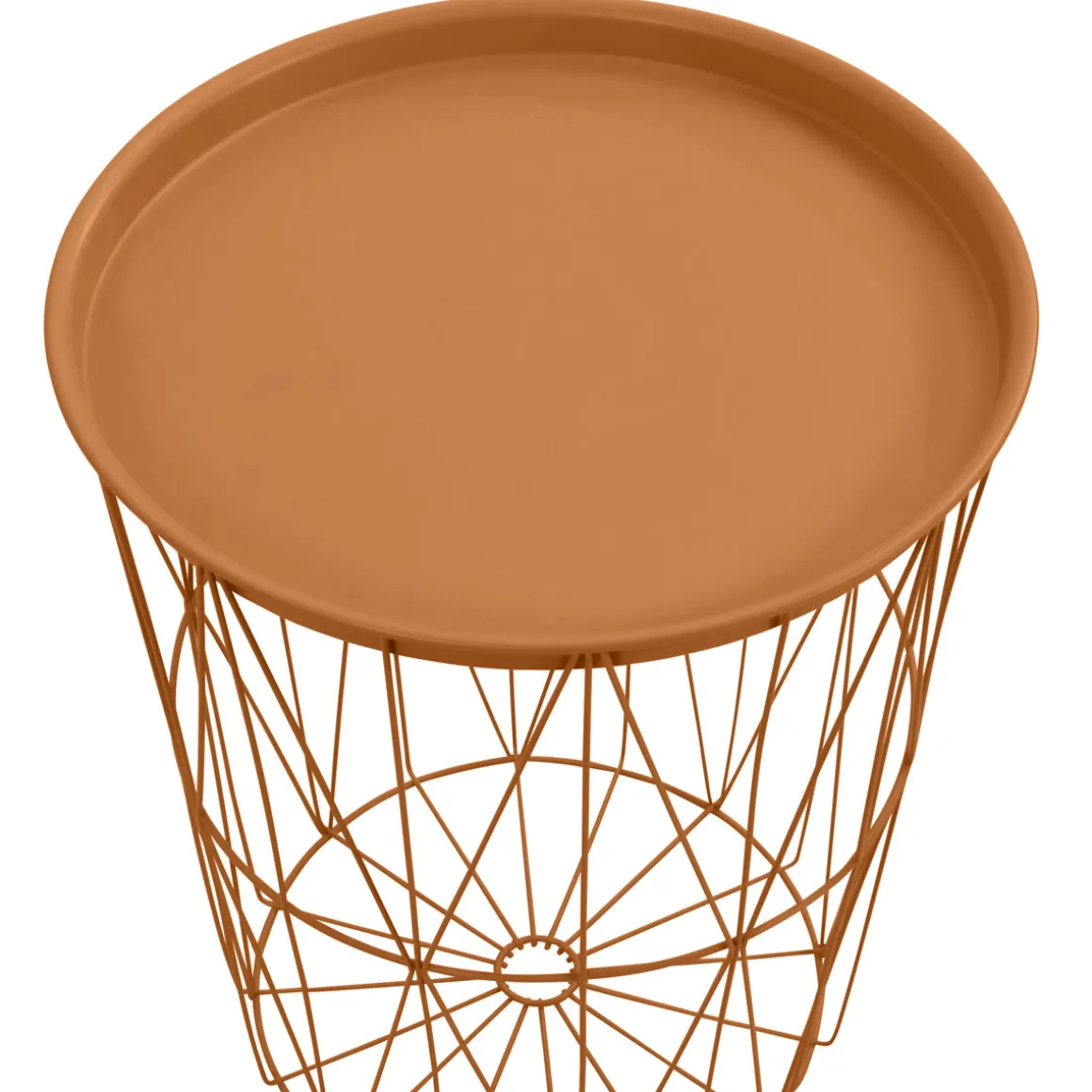 Der Beistelltisch in der Grundfarbe Kupfer und runder Grundform ist ein echter Hingucker. Mit einer Tischplatte aus Stahl und einem Tischgestell aus demselben Material ist er besonders robust und langlebig.