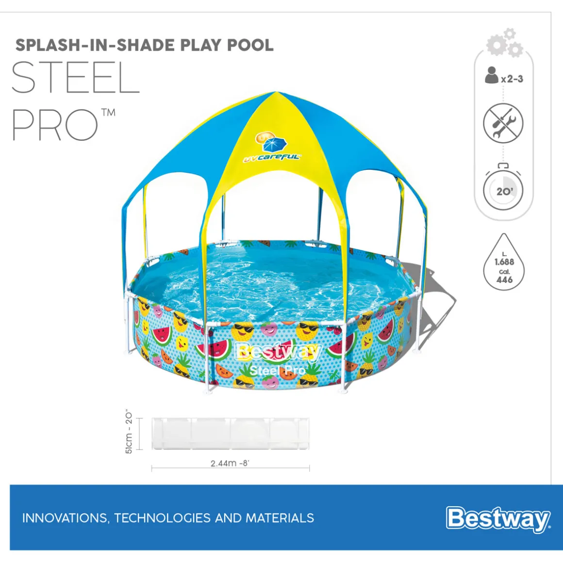 Bestway Stahlwandpool Splash-in-Shade mit Sonnendach – der perfekte Pool für heiße Sommertage