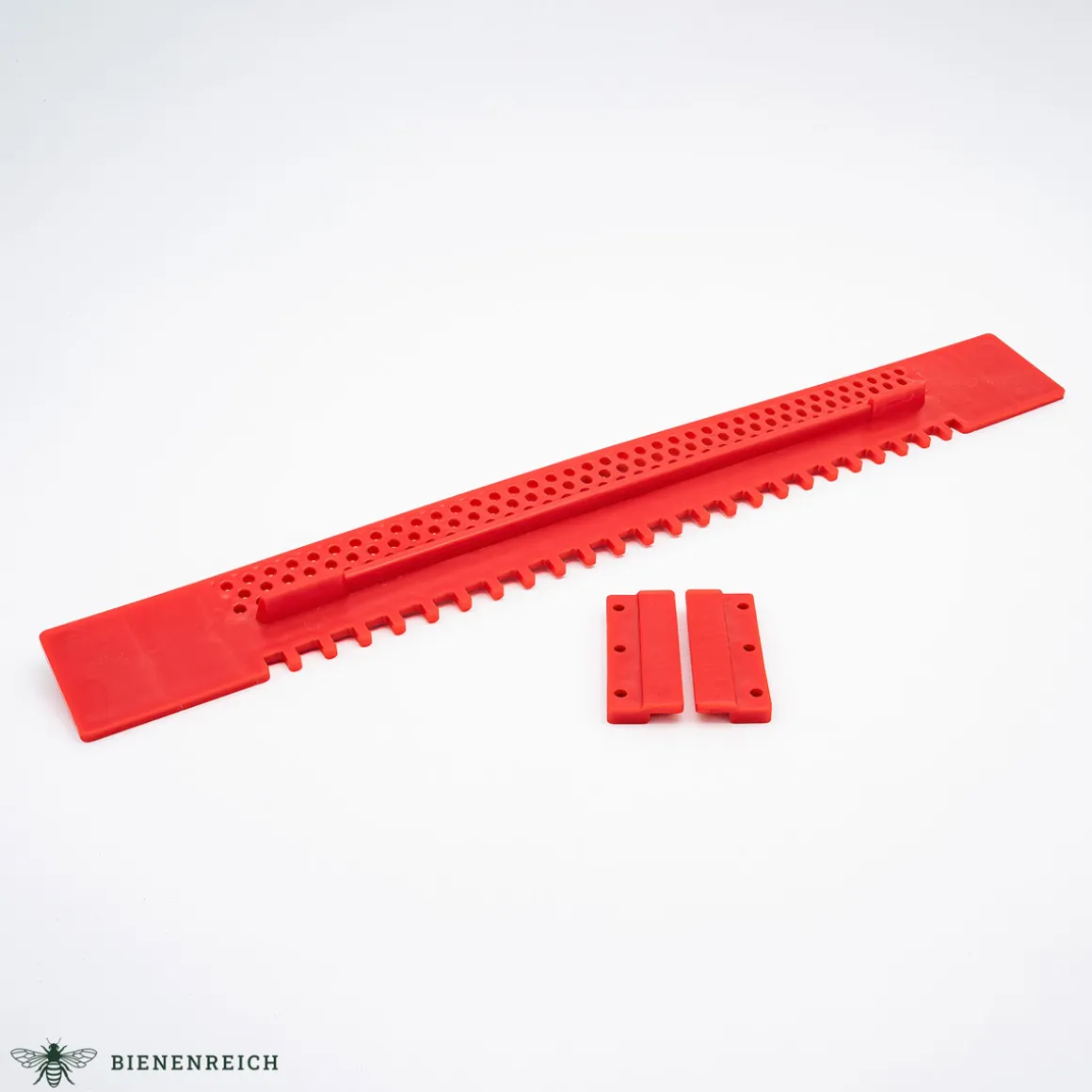Sorgen Sie für ein sicheres Zuhause Ihrer fleißigen Helfer! Der Bienenreich Bieneneingang aus robustem Kunststoff in der Grundfarbe Rot ist nicht nur ein optisches Highlight, sondern auch ein unverzichtbares Zubehör für jeden Imker. Mit seiner einfachen Handhabung und vielseitigen Einsatzmöglichkeiten bietet er Ihnen die perfekte Lösung, um das Flugloch Ihrer Beuten zu verkleinern oder komplett zu verschließen. Zudem schützt er effektiv vor Mäusen und erleichtert den Transport sowie die Auffütterung Ihrer Bienen. Dieses praktische Zubehör vereint Funktionalität mit Qualität und sorgt dafür, dass Ihre Bienen optimal geschützt sind.