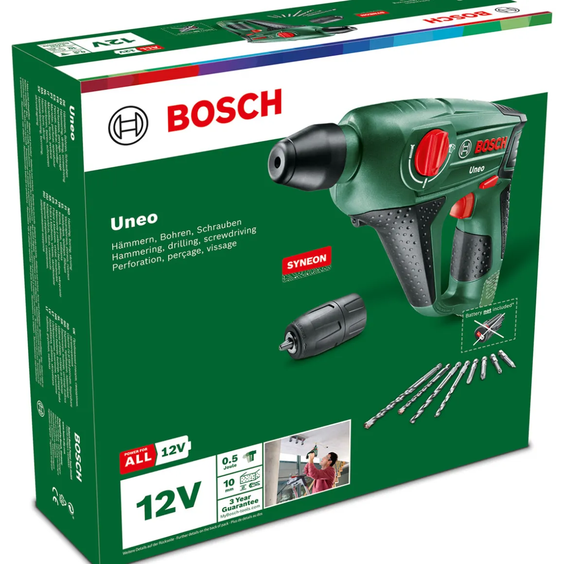 Der Bosch Akku-Bohrhammer Uneo ohne Akku eignet sich ideal für Heimwerker und Profis, die ein handliches und leistungsstarkes Gerät benötigen, das sowohl Schraub-, Bohr-, als auch Hammerbohrarbeiten mühelos erledigt.