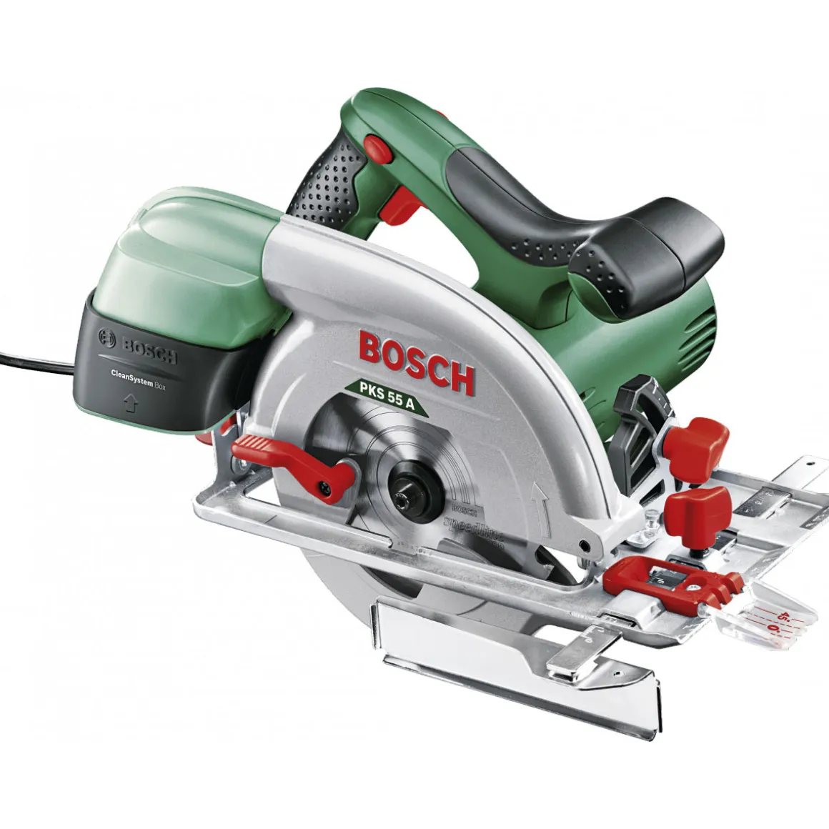 Mit der Bosch Handkreissäge PKS55A erhalten Sie ein Werkzeug mit hoher Präzision und Leistungsfähigkeit. Die Softgrip-Besätze sorgen dabei für einen sicheren Halt während des Arbeitens. Dank der CleanSystem Box werden Staub und Späne effektiv aufgefangen. Diese Säge ist somit das ideale Werkzeug für alle Heimwerker-Projekte.
