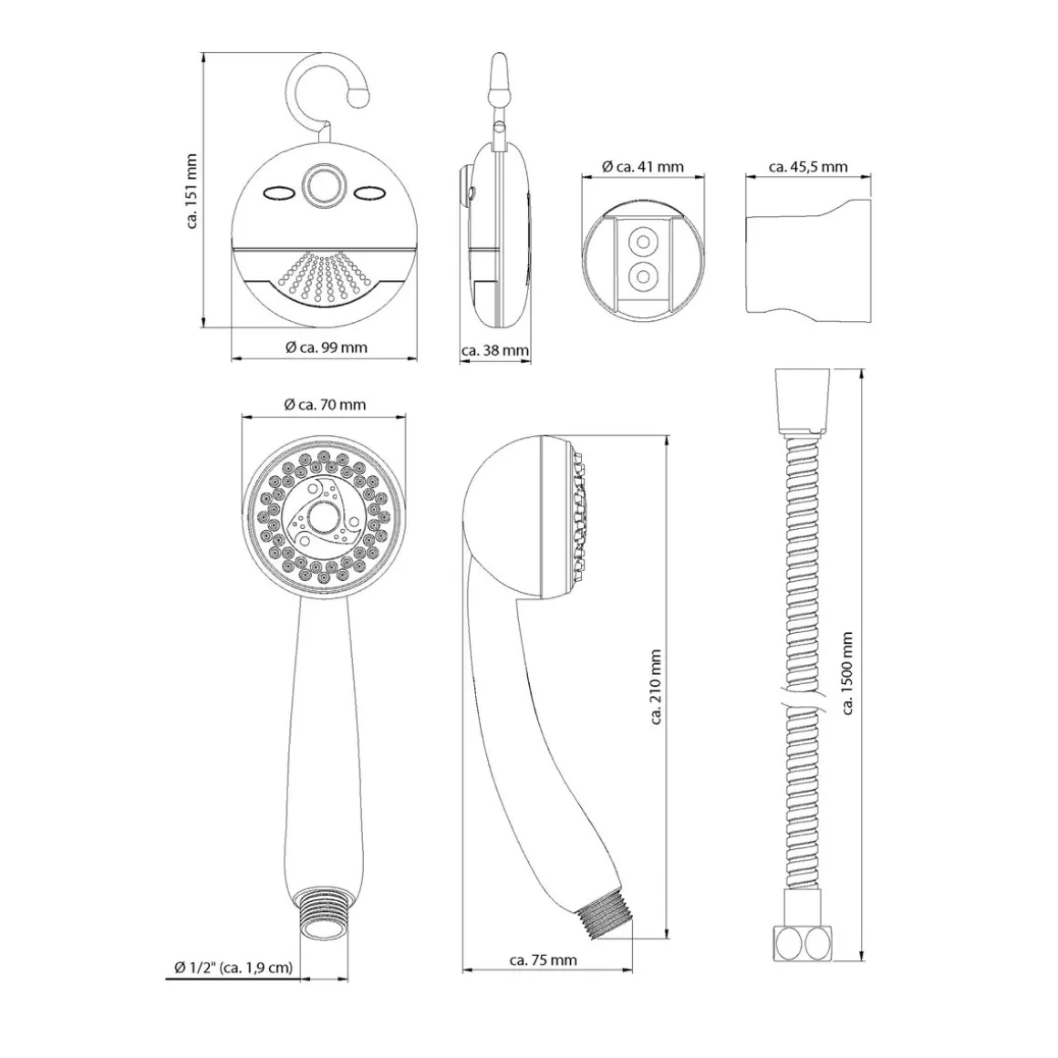 - Durchmesser Brausekopf (cm): 75 cm