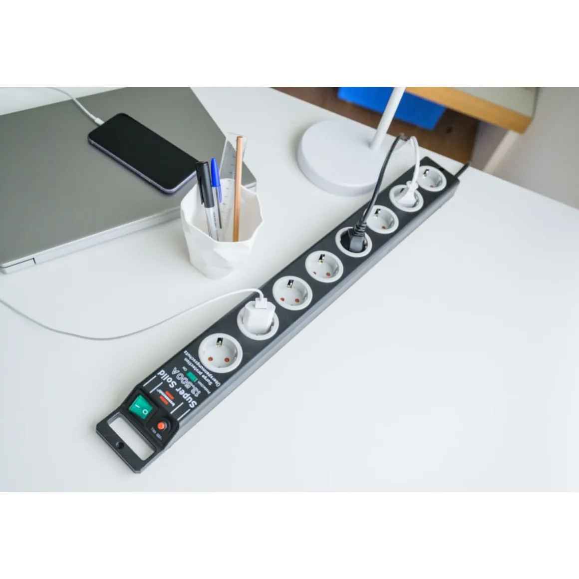 | Extras: | * Schützt wertvolle Geräte vor Überspannungen mit einem max. Ableitstrom bis zu 13.500 A.* Sehr stabil konstruierte Steckdosenleiste aus hochbruchfestem Polycarbonat. |
