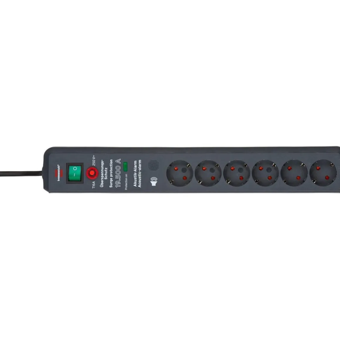 Mit der Brennenstuhl Steckdosenleiste Secure-Tec können Sie bis zu sechs Geräte gleichzeitig anschließen und vor Überspannung schützen. Das akustische Warnsignal und die Funktionskontrollleuchte informieren Sie jederzeit über den Zustand des Überspannungsschutzes.