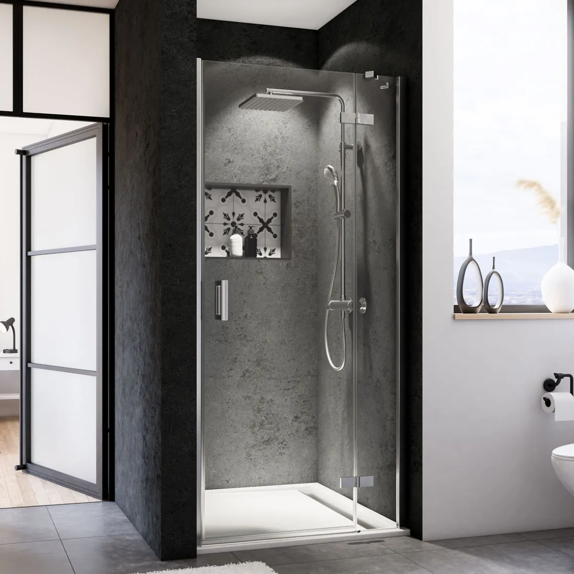 Breuer Drehtür mit Festteil Panorama für Nische, Anschlag rechts, schwarz matt, Intima, 1200 mm