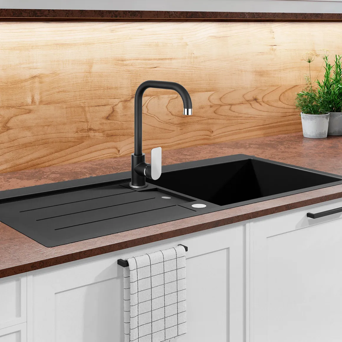 Die CORNAT Spültischarmatur NOIR ist die perfekte Wahl für alle Kunden, die Wert auf eine hochwertige Armatur mit trendiger Optik legen. Dank ihrer einfachen Montage eignet sie sich sowohl für Heimwerker als auch Profis.