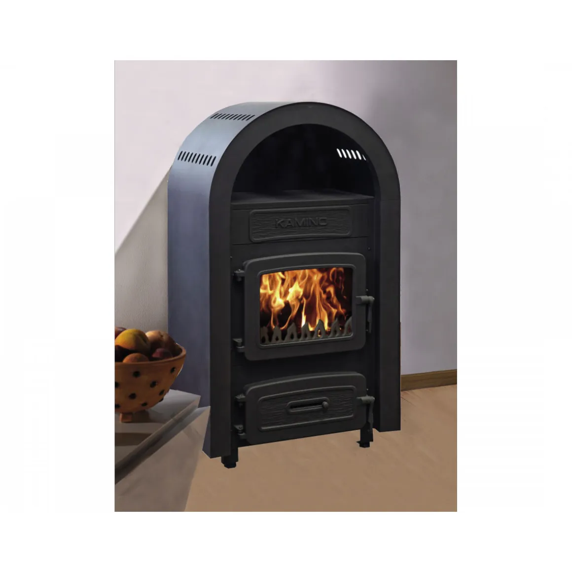 Robust und strapazierfähig ist der Ofen ebenfalls dank der Verkleidung aus Stahl. Der Ofen kann Räume mit einer Größe von bis zu 116 m³ heizen, denn er verfügt über eine Wärmeleistung von 6 kW. An diesem Ofen befindet sich der Anschluss für das Rohr hinten. Mit den Maßen von 54x98x38 cm (BxHxT) ist dieser Ofen so konzipiert, dass er in den meisten Räumen unkompliziert einen Standort finden sollte.