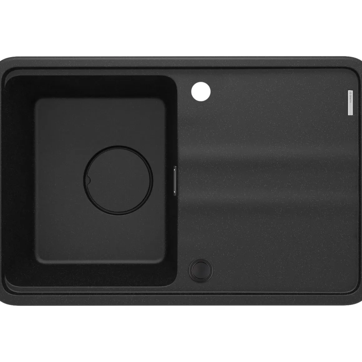 Die MOMI Spüle mit einem Becken und Abtropffläche sieht nicht nur schön aus, sondern erfüllt auch perfekt die praktischen Bedürfnisse in der Küche. Sie kann unter der Arbeitsplatte montiert werden, was von großem Vorteil ist. Ein wichtiges Merkmal dieser Spüle ist die elegante Ablaufabdeckung aus Granit, die eine schicke Note verleiht und das Sieb diskret verdeckt. Dank des automatischen Click-Stoppers lässt sich der Abfluss mit einem einzigen Klick öffnen und schließen, was bei den täglichen Arbeiten sehr praktisch ist. MOMI ist jedoch viel mehr als nur eine ästhetische Lösung. Es ist ein echter Arbeitsplatz, der für die anspruchsvollsten Benutzer entwickelt worden ist. Dank dem eleganten Schneidebrett sind alle notwendigen Küchenaccessoires immer griffbereit und ermöglichen eine bequeme und effiziente Vorbereitung der Speisen. Die Spüle MOMI ist in der Farbe Graphit Metallic ausgeführt, die einen Hauch von Raffinesse und Eleganz der Spüle verleiht.