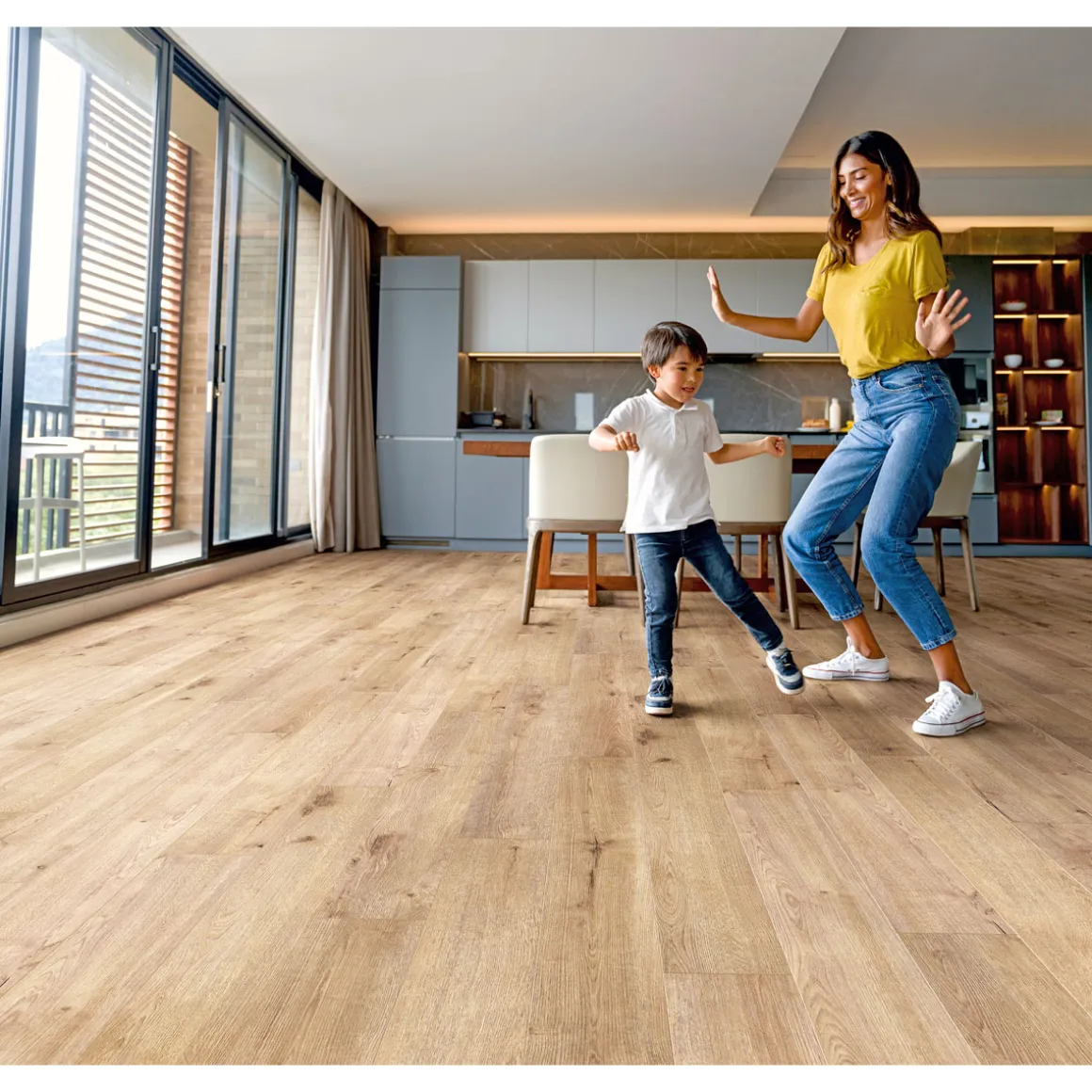Mit dem Designboden O.R.C.A Flex Sand River Oak holen Sie sich die natürliche Schönheit von Holz in Ihr Zuhause. Dieser Bodenbelag besticht durch seine authentische Holznachbildung und den warmen Farbton, der jedem Raum eine gemütliche Atmosphäre verleiht.
