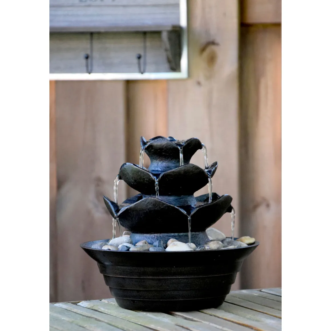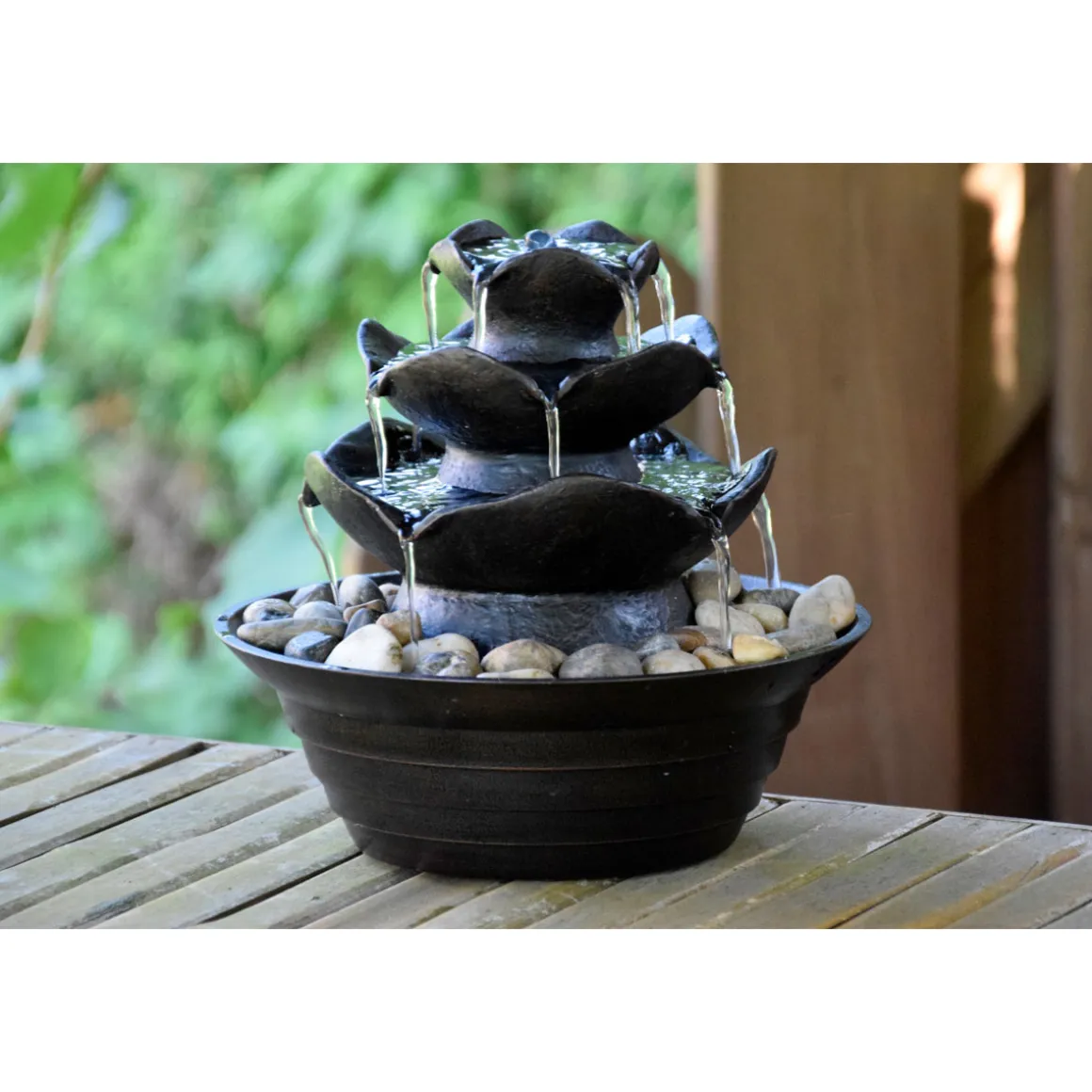 - Vier kunstvolle Schalen verleihen dem Brunnen eine ästhetische Optik und dynamischen Wasserfluss.