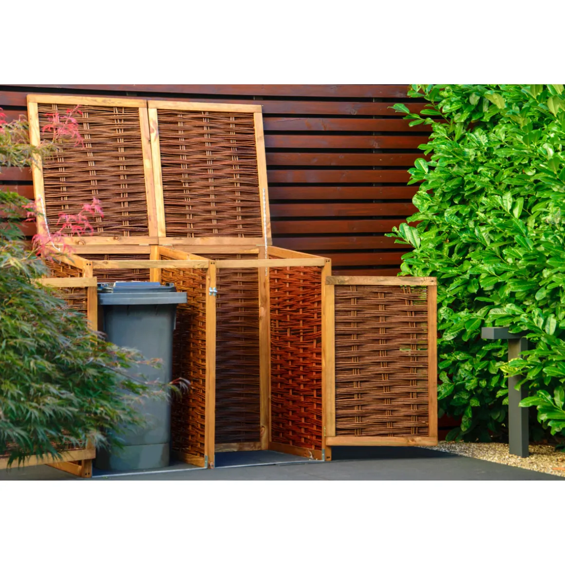 - Großzügige Maße von 125 x 80 x 115 cm bieten Platz für zwei Tonnen à 120 Liter