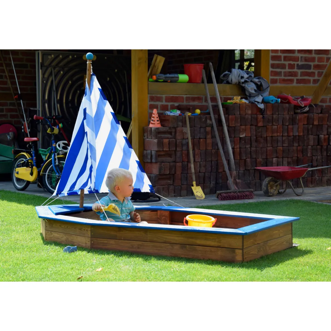 | Farbe: | blau-weiß gestreift, braun |