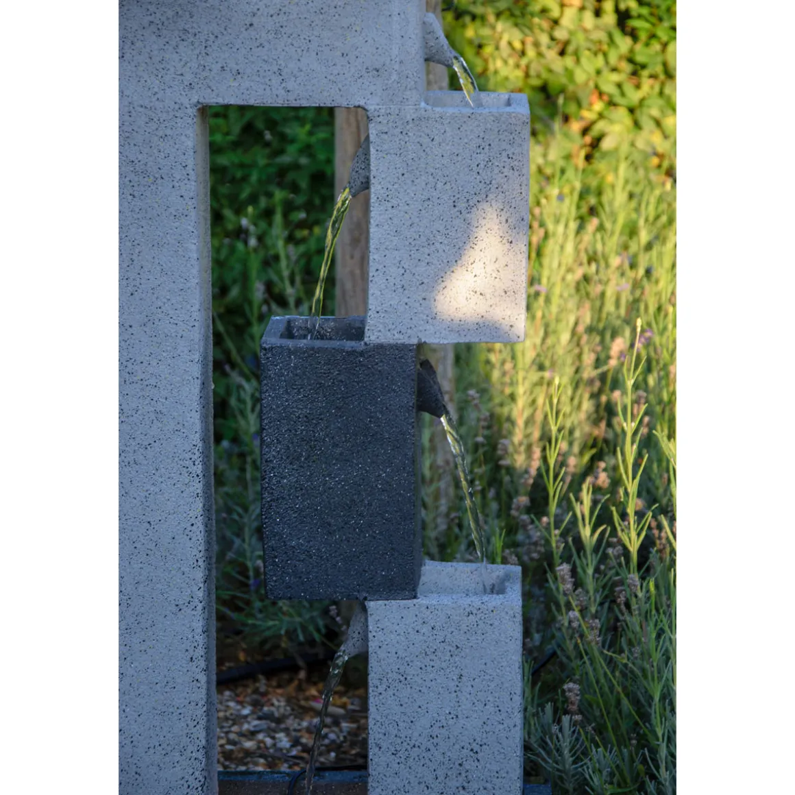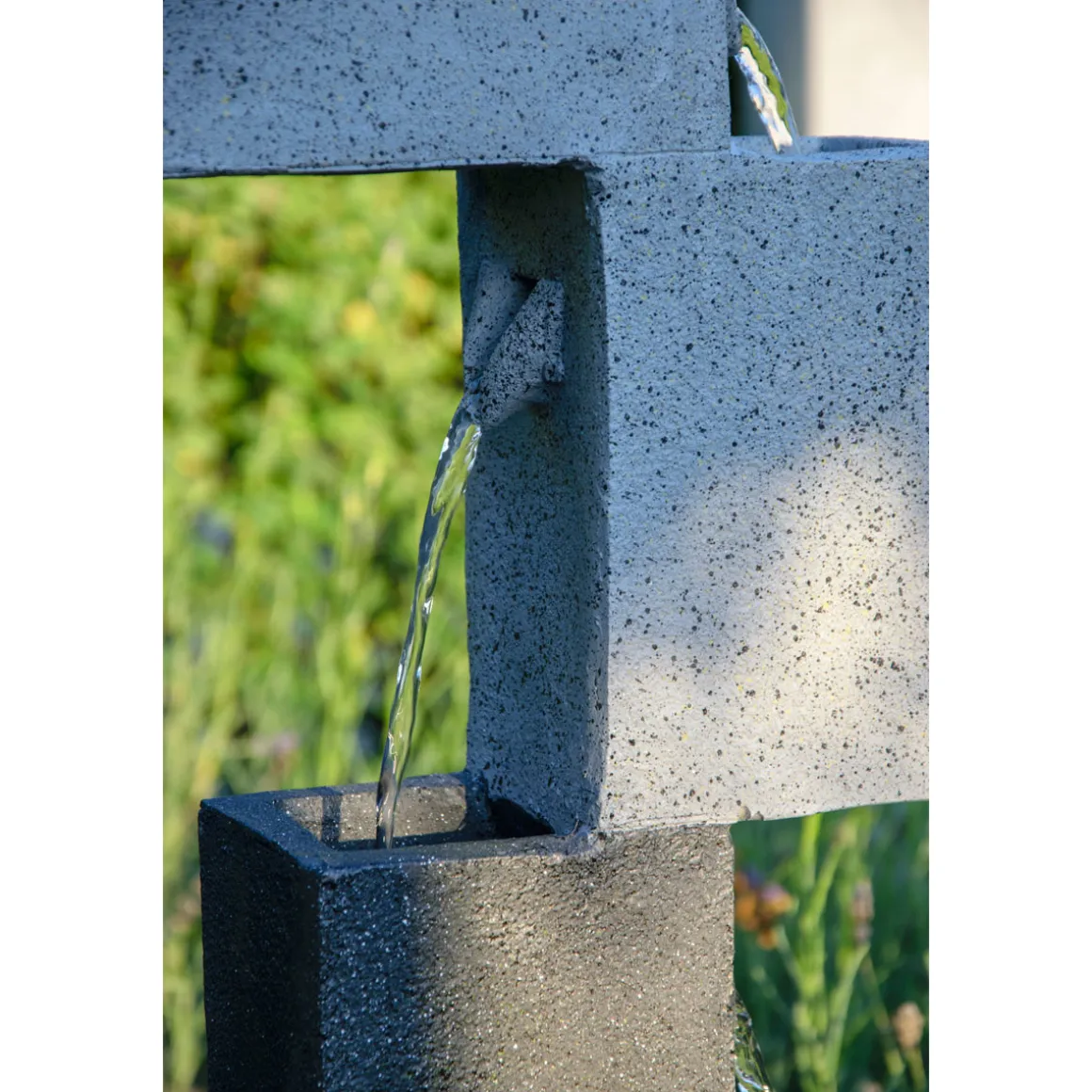 - Besonders leichter Kunststein ermöglicht müheloses Umstellen des Brunnens nach Belieben