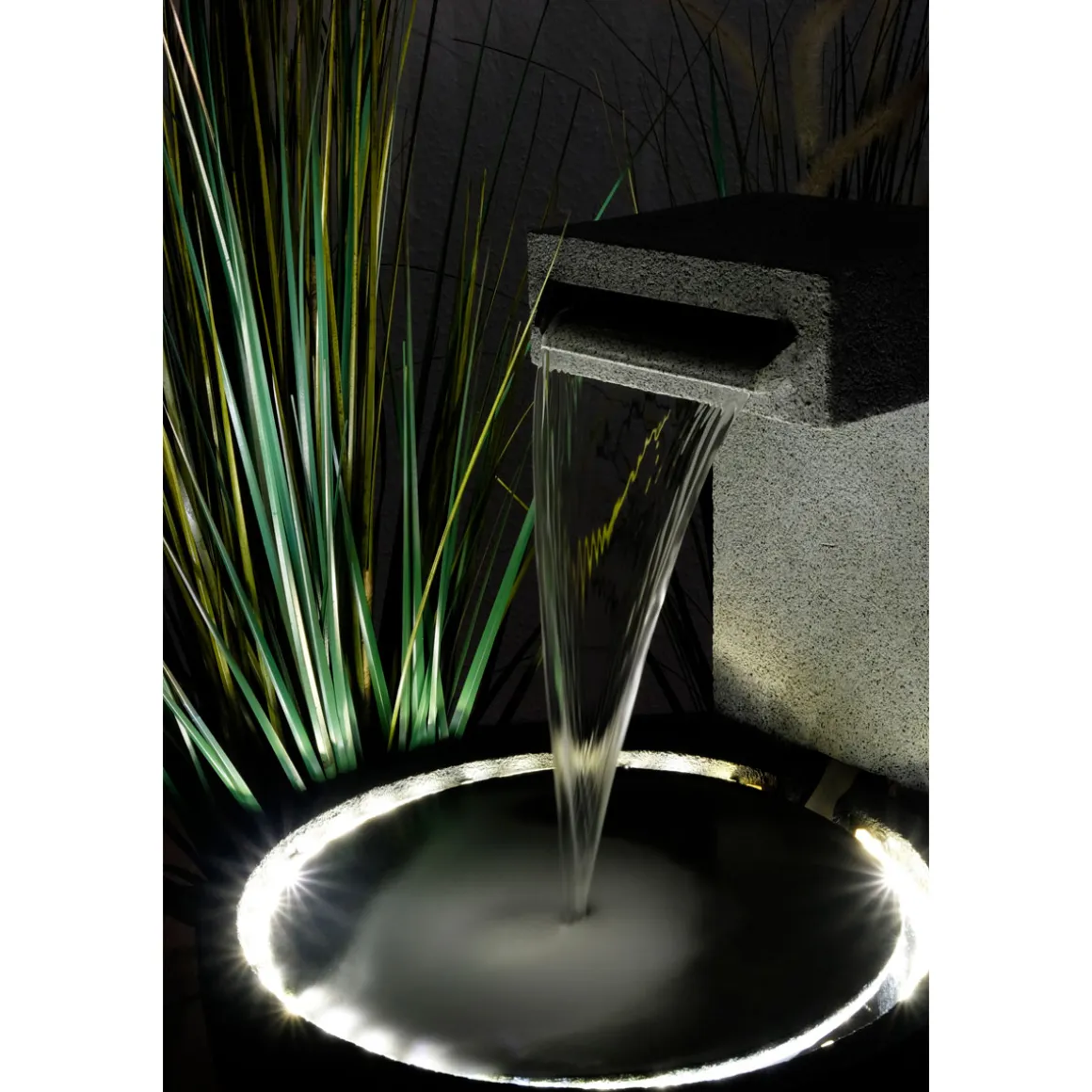 - Eckige Form mit runder Schale verleiht dem Brunnen ein modernes Design passend zu jedem Gartenstil