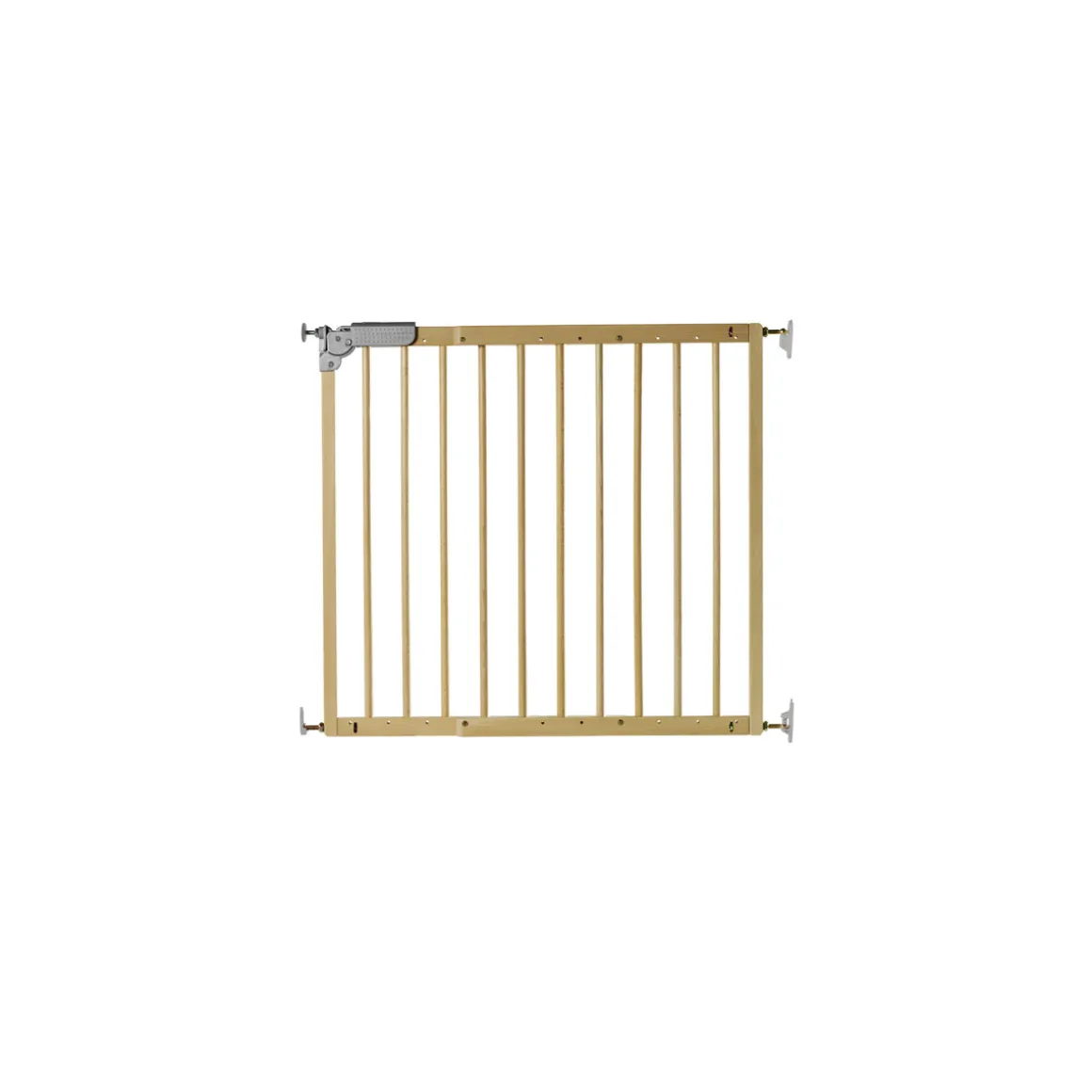 Das Kindersicherheitsgitter „Pia“ aus Massivholz, lackiert, verbindet Sicherheit mit Komfort. Damit das Gitter nur den Nachwuchs an Treppenauf- und Abgängen hindert, ist es mit einem Sicherheitsverschluss ausgestattet, der sich bequem mit nur einer Hand öffnen lässt. „Pia“ ist für eine Breite zwischen 79 und 113,5 cm einsetzbar. Dank der Klemmvorrichtung sind Schrauben bei Auf- und Abbau überflüssig.