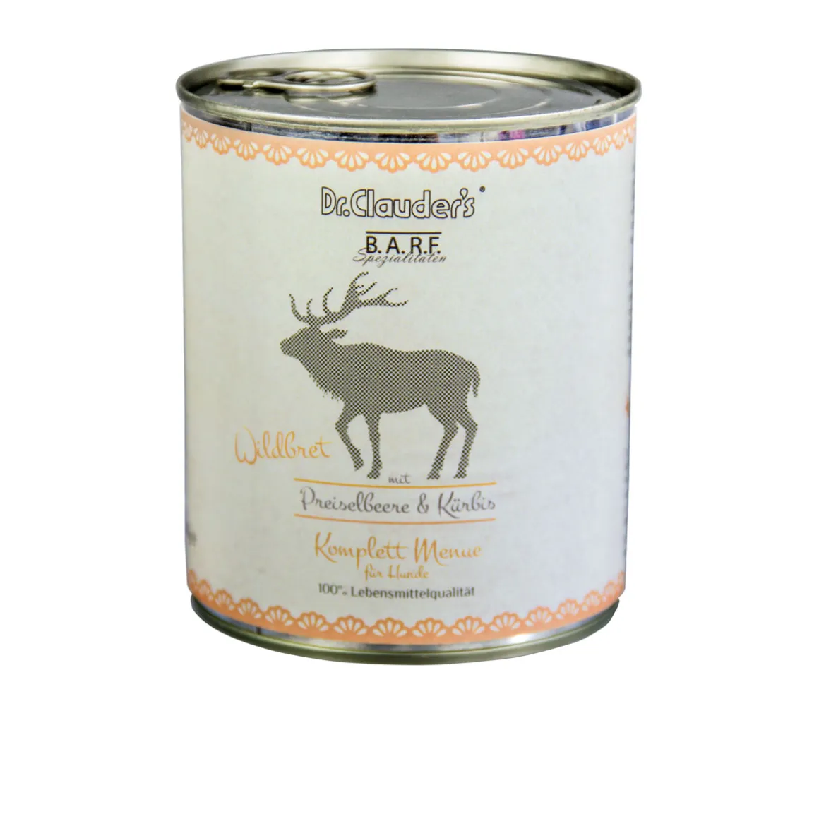 Mit Dr. Clauder’s Komplett Menues kann barfen gar nicht einfacher sein. Schonend eingekochte Fleischeintöpfe, mit ausgewählten Früchten und Gemüse mit natürlichen Ölen – Damit Sie Ihrem vierbeinigen Liebling die naturnaheste Nahrung servieren können.Im Gegensatz zu herkömmlich produzierten Produkten werden die Komplett Menues nur mit naturbelassenen Ölen angereichert, um so den Vitamingehalt auf natürlichem Wege zu er-reichen. Zusammen mit dem Anteil an Innereien erhält Ihr Vierbeiner eine artgerechte und natürliche Versorgung mit Vitaminen, Mineralien und Spurenelementen.Dr.Clauder’s Komplett Menue „Wildbret“ besteht in einem optimalen Verhältnis aus Muskel-fleisch und Innereien 100% vom Wild – dazu Apfel, Preiselbeeren, Kürbis und Kartoffeln. Aus den zugefügten Ölen werden die wichtigen Vitamine und Fettsäuren gezogen. Näher an der Natur kann nur noch das eigene Jagen sein. Aufgrund der Single-Protein Rezeptur ist dieses Produkt auch für Allergiker geeignet.Dr.Clauder’s BARF Spezialitäten stehen für den puren BARF Genuss für Ihren Hund.