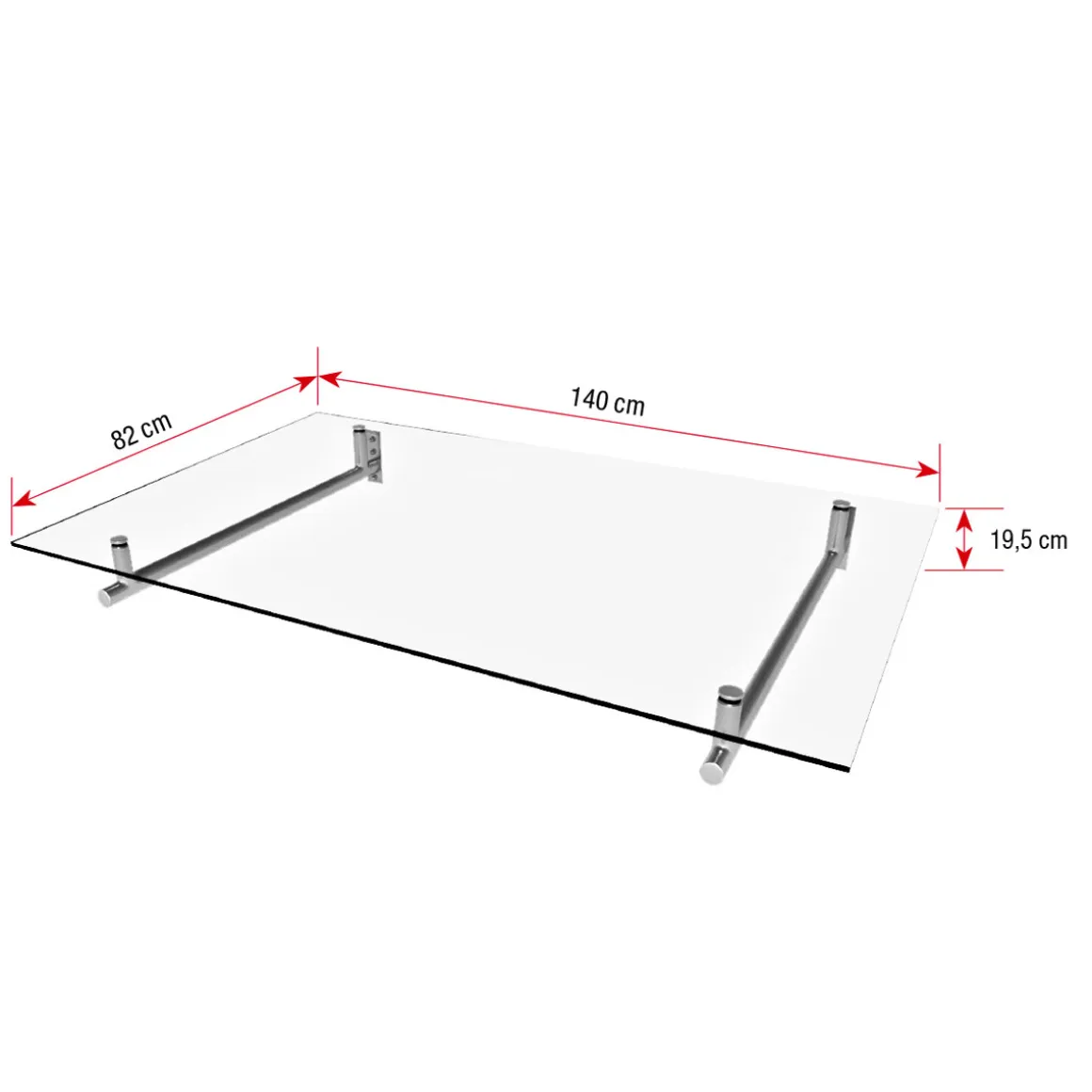 Material: Träger aus Edelstahl, Abdeckung: klares Verbundglas 8 mm stark, inklusive komplettem Montagezubehör.