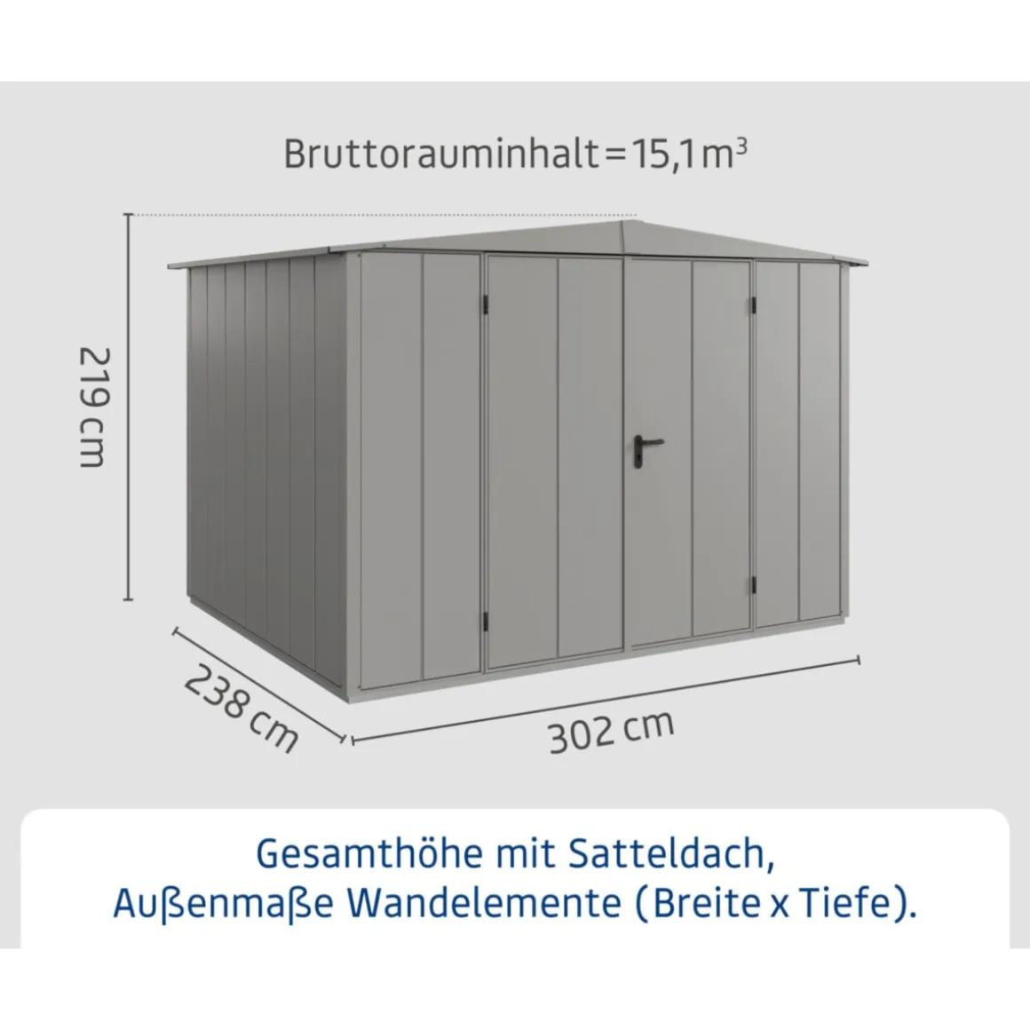 EcoStar Gerätehaus Elegant-STyp 3RAL9007 2 flg