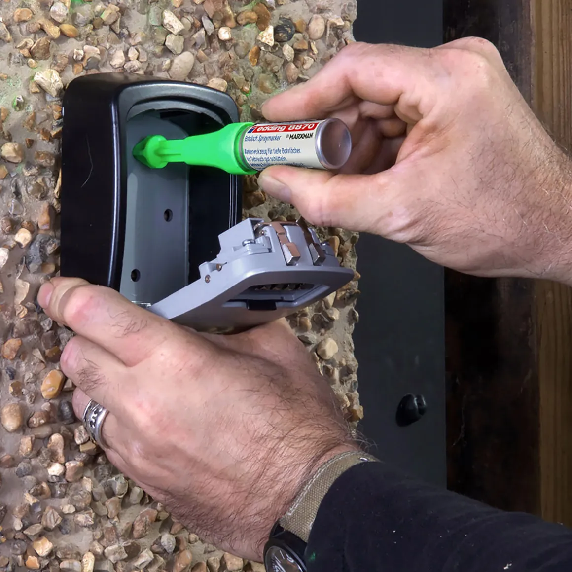 - Speziallösung für die Markierung besonders tiefer Bohrlöcher an schwer zugänglichen Stellen.