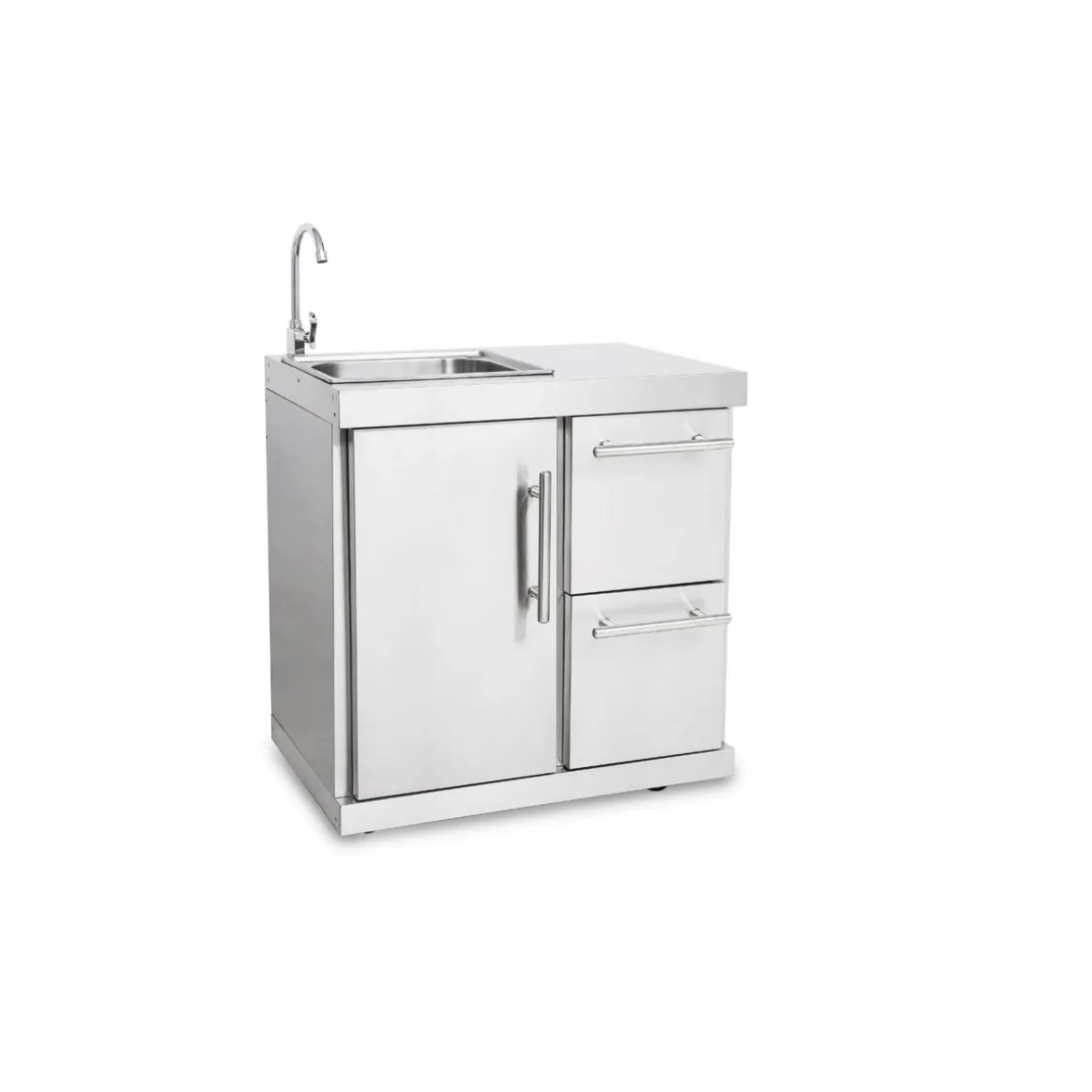 Die Edelstahl-Outdoor-Küche mit Spülbecken und Schubladen