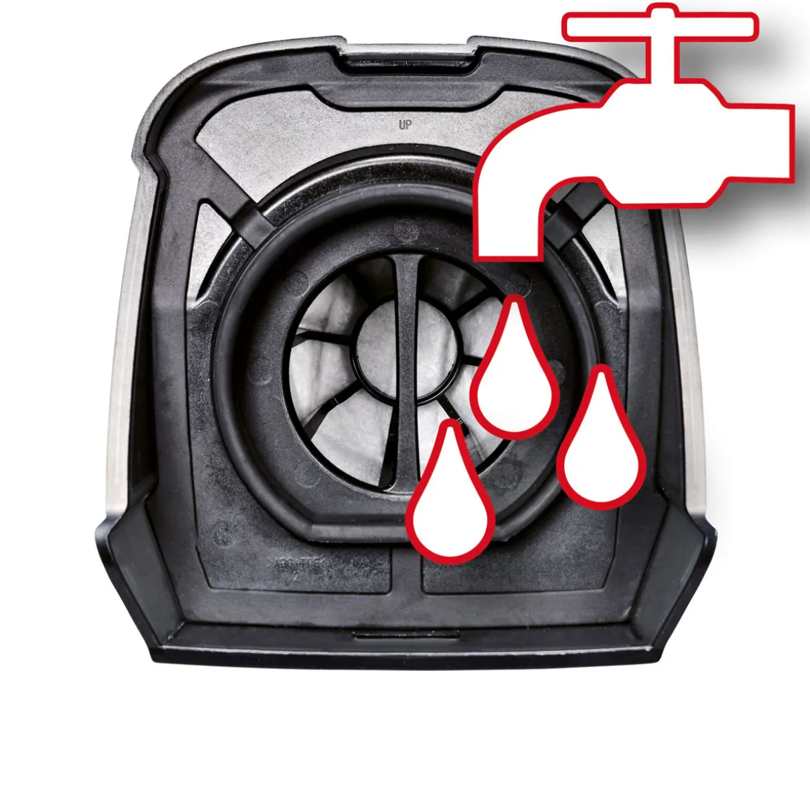 - Schnelles Entleeren des Behälters auf Knopfdruck