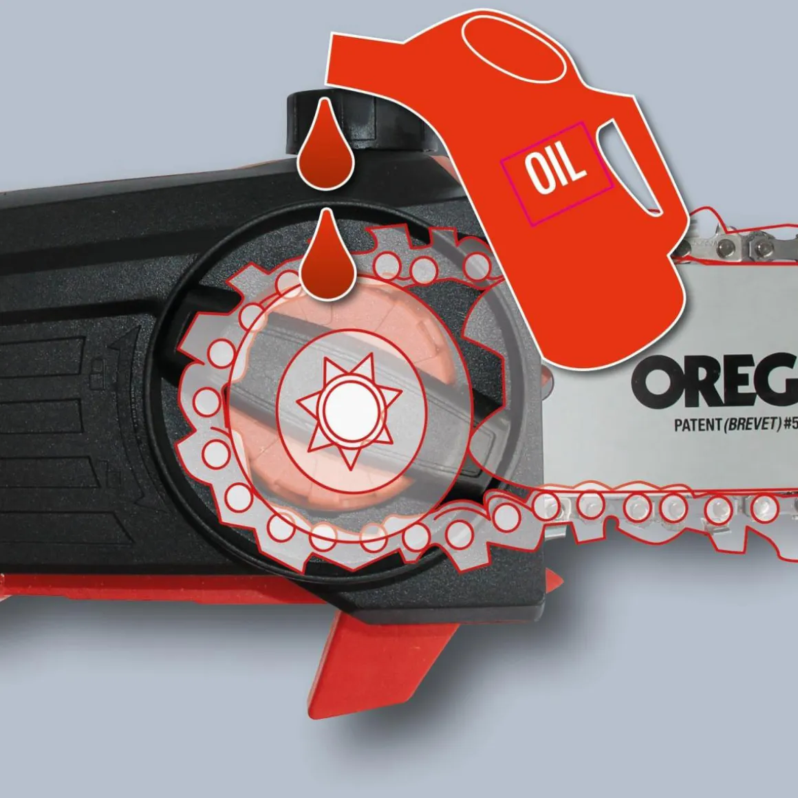 - Hochwertiges OREGON-Qualitätsschwert und –Kette (Schwertlänge: 200 mm, Kettenteilung: 3/8 Zoll, Anzahl Zähne: 33)