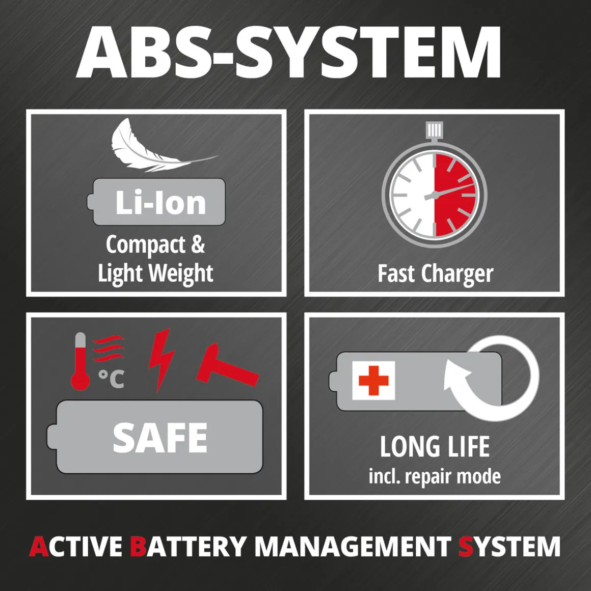 - Akkukapazität: leistungsstarker Lithium-Ionen-Akku mit einer Kapazität von 2 Ah