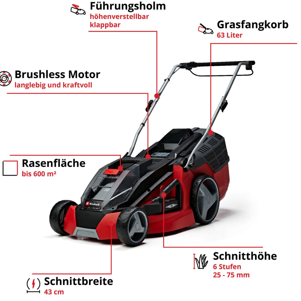 Produktdetails des Einhell Akku-Rasenmähers GE-CM 43 Li M: