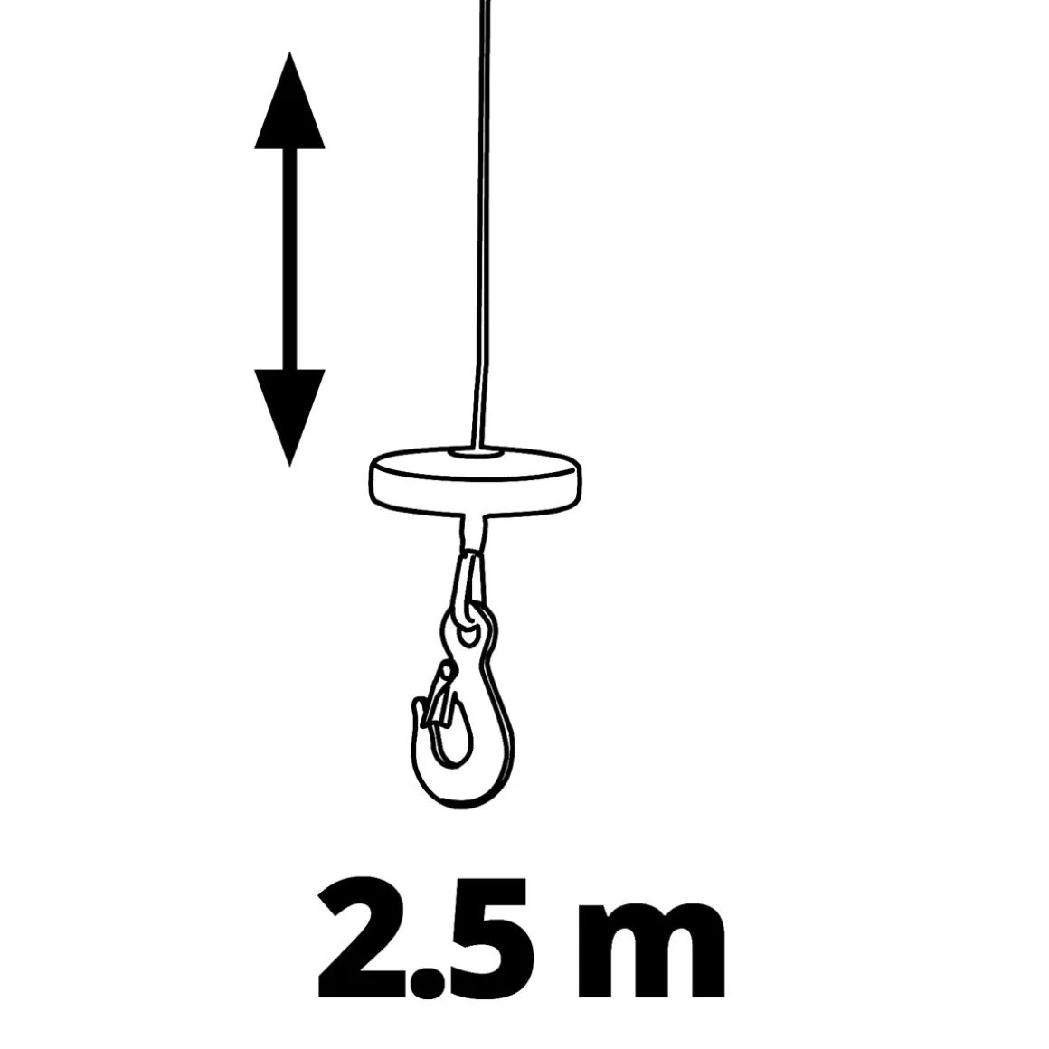 - Hubhöhe: 2,5 m (ohne Umlenkrolle)