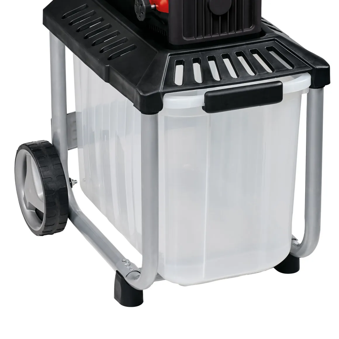 - – Ausstattung: Schneidwalze, automatischer Einzug, große Trichteröffnung, Drehrichtungsumschalter zum Lösen von Verstopfungen, Sicherheitsschalter an der Fangbox, max. 92 dB