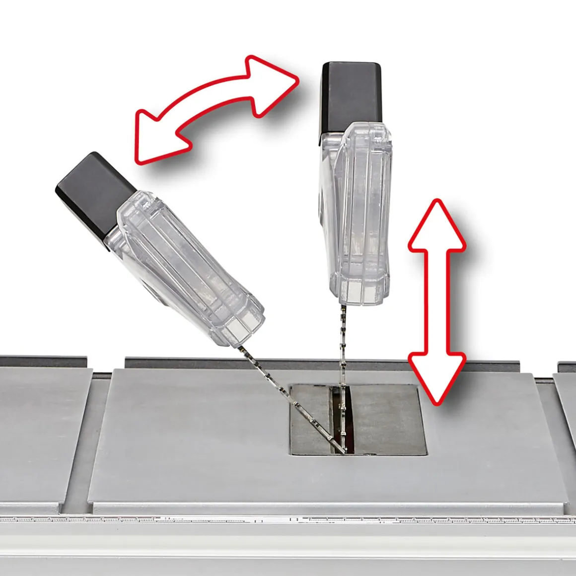 - Schnitttiefe bei 45 °: 55 mm
