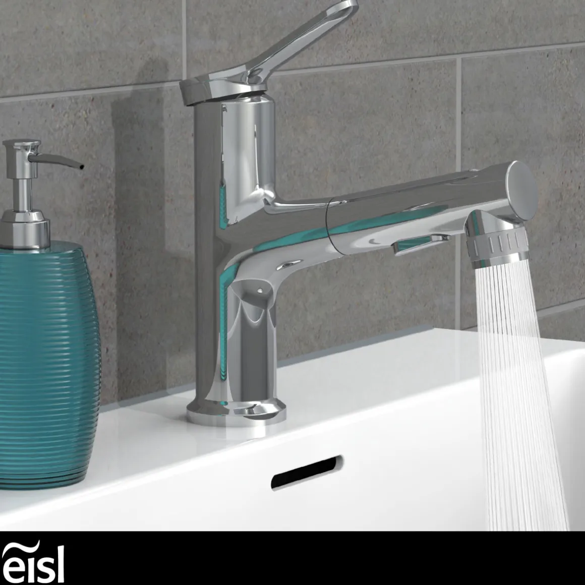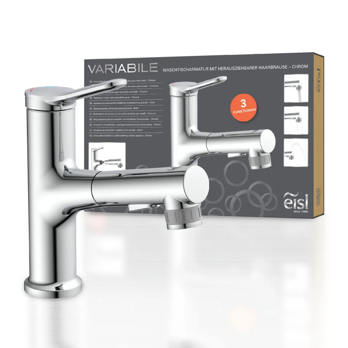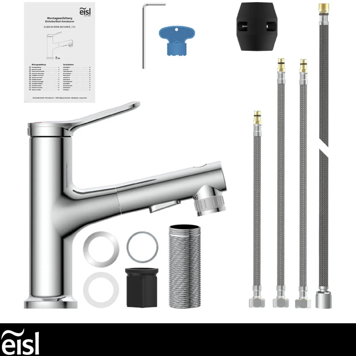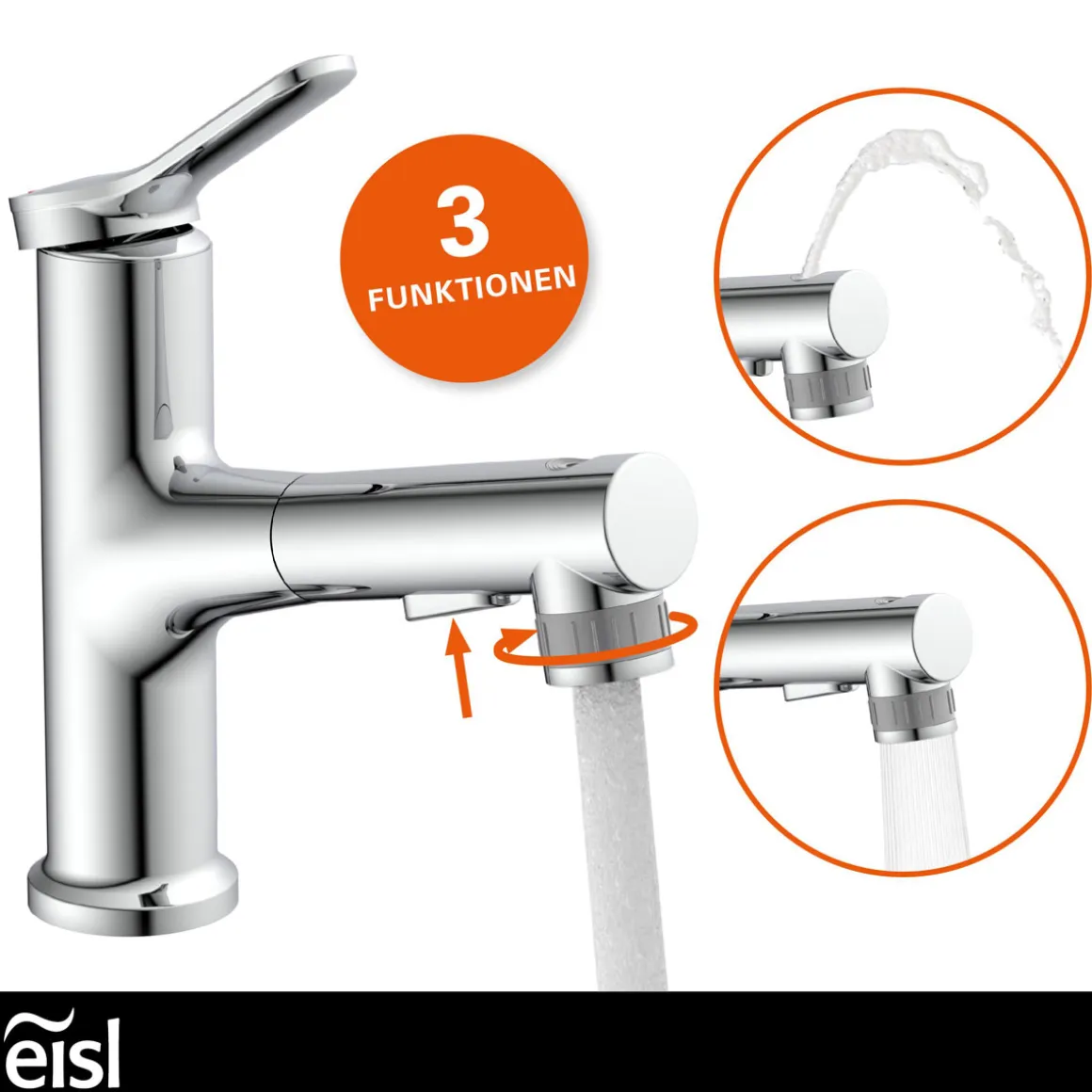 - Waschtischarmatur mit herausziehbarer Brause (zwei Strahlarten) und Munddusche