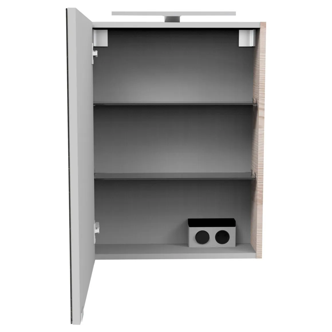 Dieser Spiegelschrank eignet sich perfekt für alle Kunden mit kleinen Badezimmern oder Gäste-WCs. Er bietet ausreichend Stauraum und sorgt dank seiner LED-Beleuchtung für eine angenehme Atmosphäre.