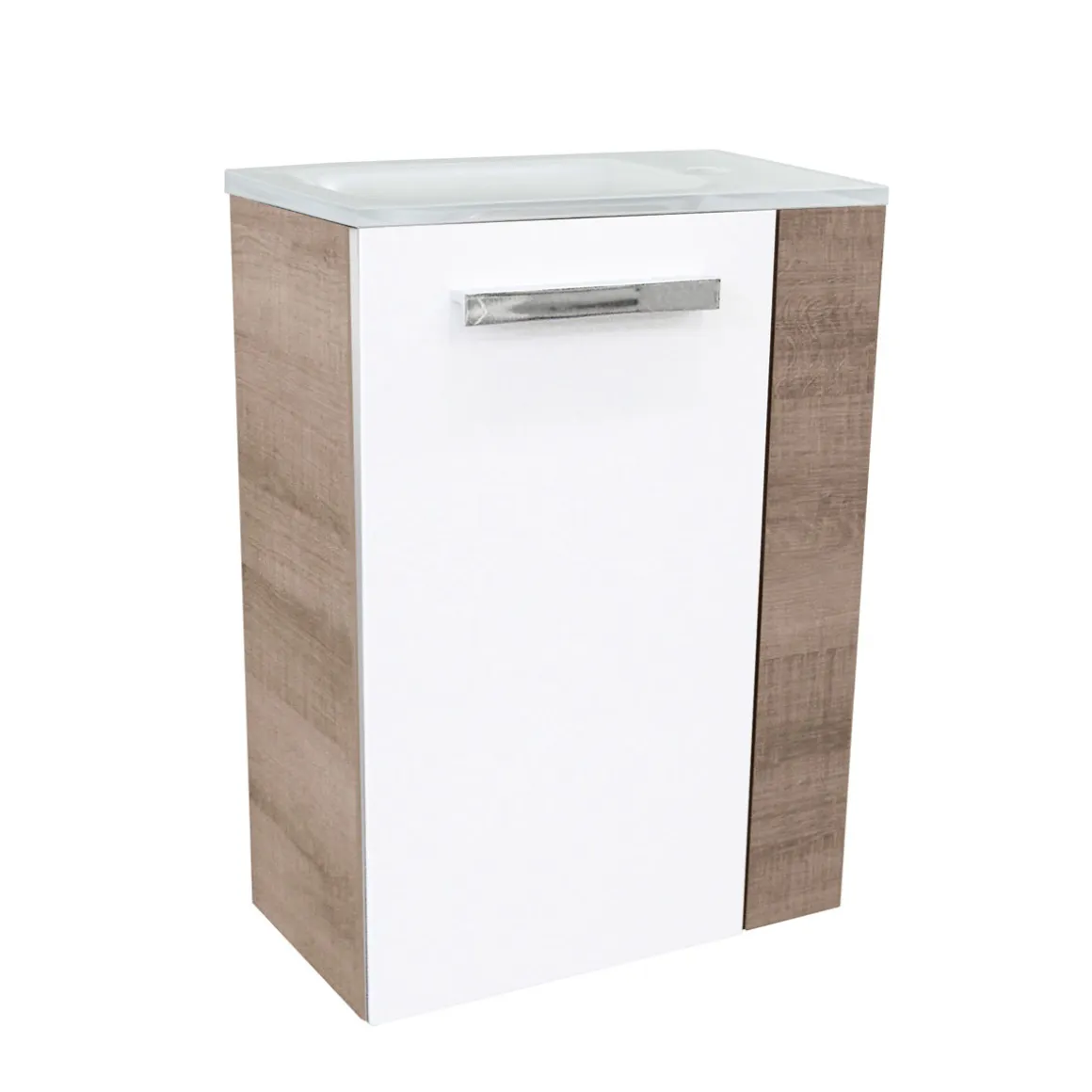 Fackelmann Gäste-WC Waschtischunterschrank links SBC 440 x 600 x 243 mm Graueiche/Weiß