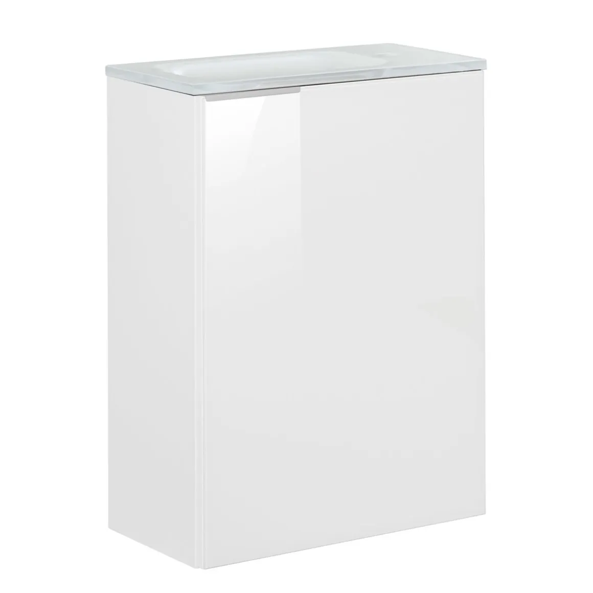 Der Fackelmann Gäste-WC Waschtischunterschrank ist die perfekte Lösung für kleine Badezimmer. Mit seinen Maßen von 44x60x24,3 cm bietet er ausreichend Stauraum und lässt sich platzsparend an der Wand montieren. Die weiße Lackierung und das glänzende Glas-Frontelement verleihen dem Unterschrank eine elegante Optik.