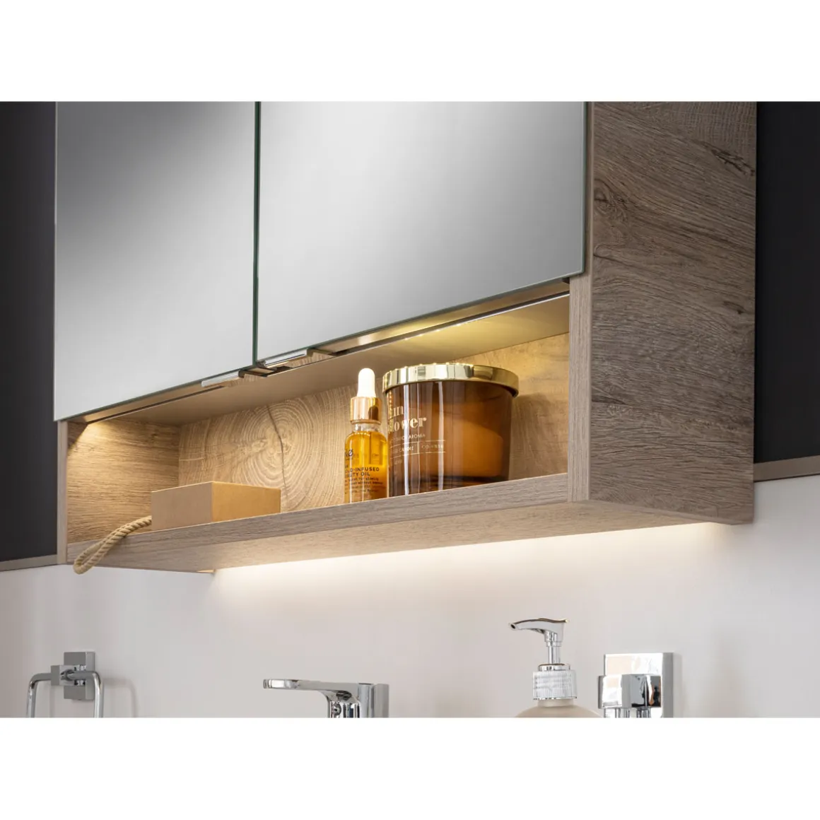- Inklusive LED-Paneelleuchte (T 26,3 cm) und beleuchtetem Ablagefach