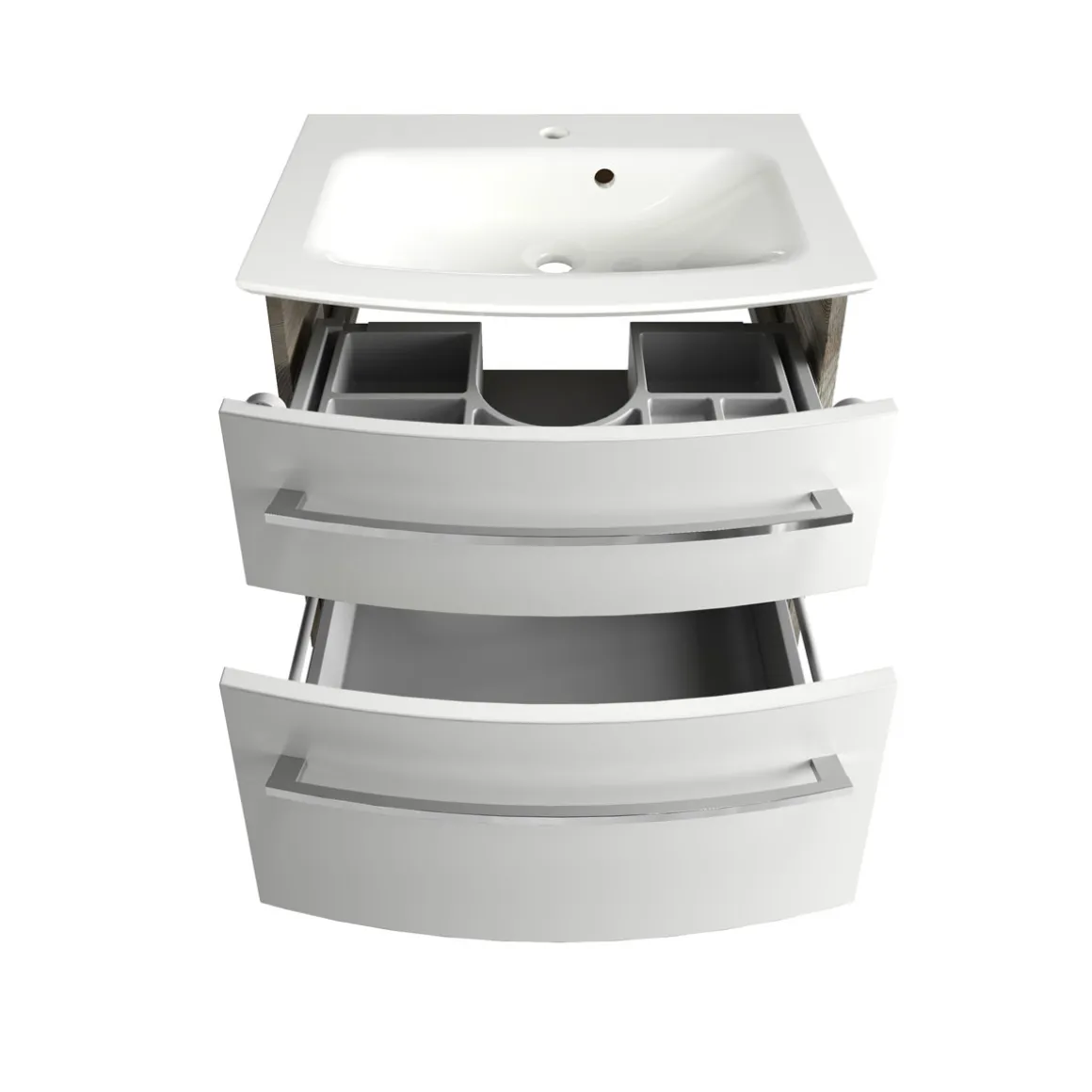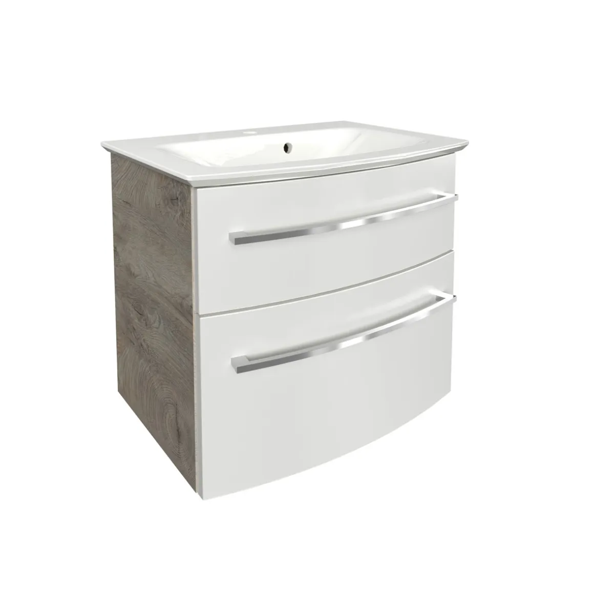 Mit dem Fackelmann Waschtisch-Set B.Style holen Sie sich ein hochwertiges und modernes Badmöbel in Ihr Zuhause. Das Set besteht aus einem Mineralguss-Waschtisch und einem passenden Unterschrank in Eiche natur, der mit weißer Hochglanzfront und Chromgriffen ein echter Hingucker ist.